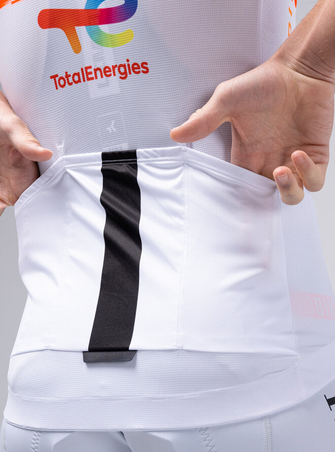 Ľahkosť a vyvážený strih v modeli, ktorý dokonale kombinuje výkon a pohodlie. Je navrhnutý pre tých, ktorí sa chcú cítiť ako skutoční profesionáli, jeho pokročilá konštrukcia zaručuje správnu podporu a jedinečný pocit voľnosti, vďaka čomu môžete čeliť dlhým dňom na bicykli bez toho, aby ste museli obetovať pohodlie. Jeho konštrukcia zahŕňa priedušné, rýchloschnúce materiály, ktoré udržujú pokožku v chlade a suchu aj počas najhorúcejších dní alebo najintenzívnejších tréningov. Nový, racionálnejší vzor s prepracovaným golierom. Rukávy s kompaktnou aerodynamickou tkaninou. Laserom strihané ramená bez švov. 3 zadné vrecká. Minimalistický silikónový pás v páse.Detaily