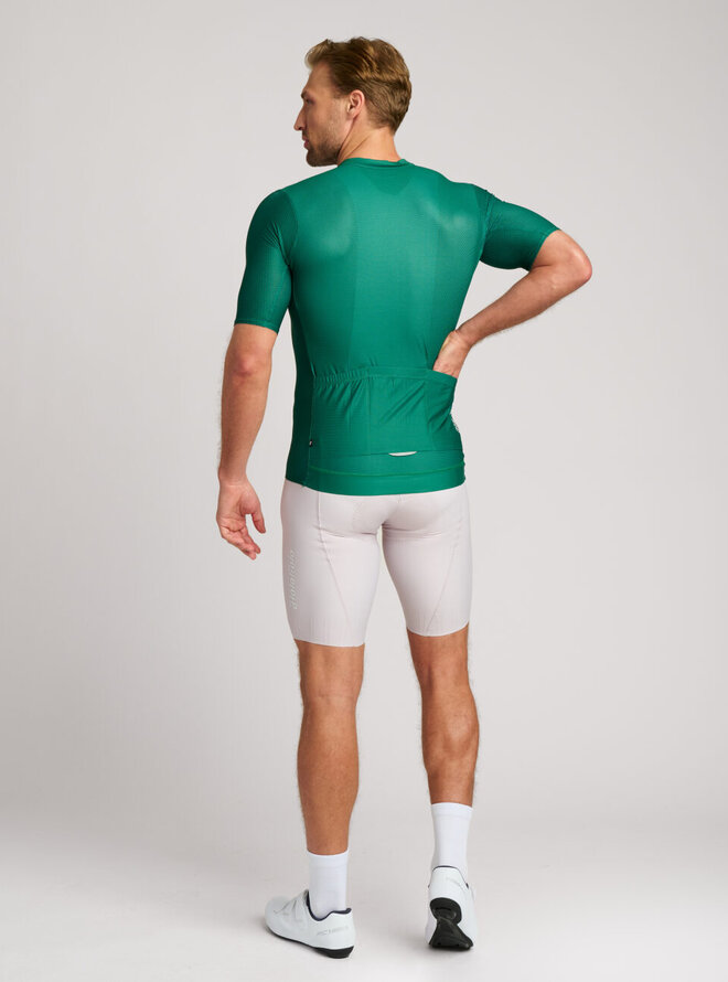 Aerolite je ideálny dres pre teplé až horúce podmienky. Je rýchloschnúci a jeho elastická štruktúra sa dokonale prispôsobí pohybu, aby ste sa cítili voľne a bez obmedzení. Je kombinovaný z dvoch sieťovinových látok, ktoré zabezpečujú vysoké odvádzanie tepla a vlhkosti. Predná strana dresu poskytuje mimoriadnu ventiláciu a maximálne chladenie, zatiaľ čo zadná je trochu pevnejšia, no stále vysoko priedušná a spoľahlivo drží tvar aj pri plných zadných vreckách. Nechýba mu ani skryté vrecko na zips, predný zips s ochranným prekrytím krku a protišmykové zakončenie na zadnej strane dresu. Je vybavený diskrétnymi reflexnými detailami a všetko dotvára čistý dizajn.