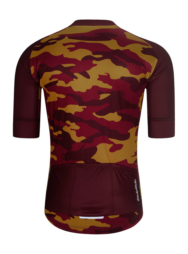 Je vyrobený z pevnejšieho strečového materiálu v kombinácii s vysoko priedušnou sieťovou látkou po bokoch pre odvod potu. Je vybavený klasickým trojitým vreckom a bezpečnostým vreckom na zips. Nechýbajú protišmykové zakončenia po spodnom obvode dresu a rukávov. Dizajn dresu dopĺňa maskáčový vzor, ktorý podčiarkuje jeho prírodný charakter.