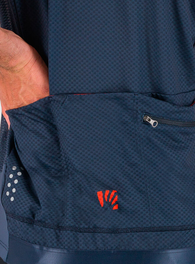 Letný MTB dres Karpos Green Fire je vyhotovený z dvojice funkčných materiálov, ktoré poskytujú optimálny komfort aj počas celodenného jazdenia. Na prednej strane sa nachádza hebký, elastický materiál, ktorý zaisťuje priliehavé sedenie. Lepšie odvádzanie potu od pokožky (a to aj pri nosení ruksaku) zabezpečuje dierkovaný materiál na bokoch, rukávoch a chrbte. Pre odloženie si všetkých potrebných vecí je dres vybavený 3 priestrannými vreckami a menším vnútorným vreckom.