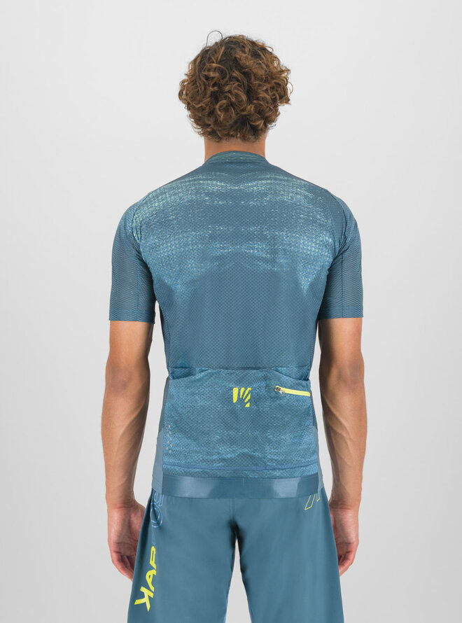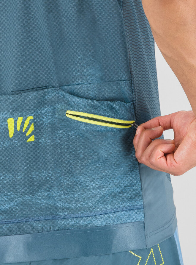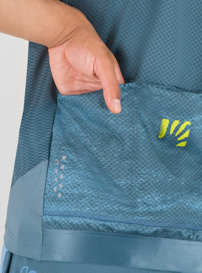 Letný MTB dres Karpos Green Fire je vyhotovený z dvojice funkčných materiálov, ktoré poskytujú optimálny komfort aj počas celodenného jazdenia. Na prednej strane sa nachádza hebký, elastický materiál, ktorý zaisťuje priliehavé sedenie. Lepšie odvádzanie potu od pokožky (a to aj pri nosení ruksaku) zabezpečuje dierkovaný materiál na bokoch, rukávoch a chrbte. Pre odloženie si všetkých potrebných vecí je dres vybavený 3 priestrannými vreckami a menším vnútorným vreckom.