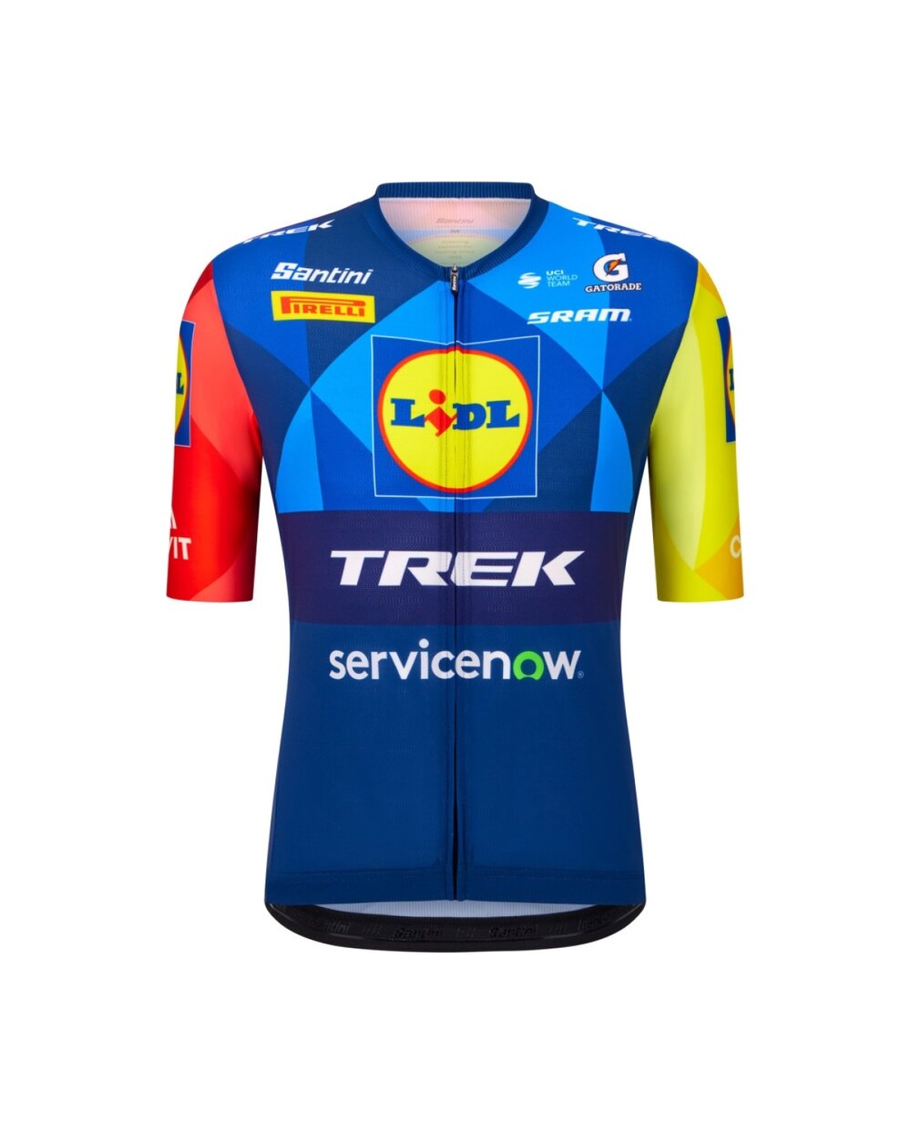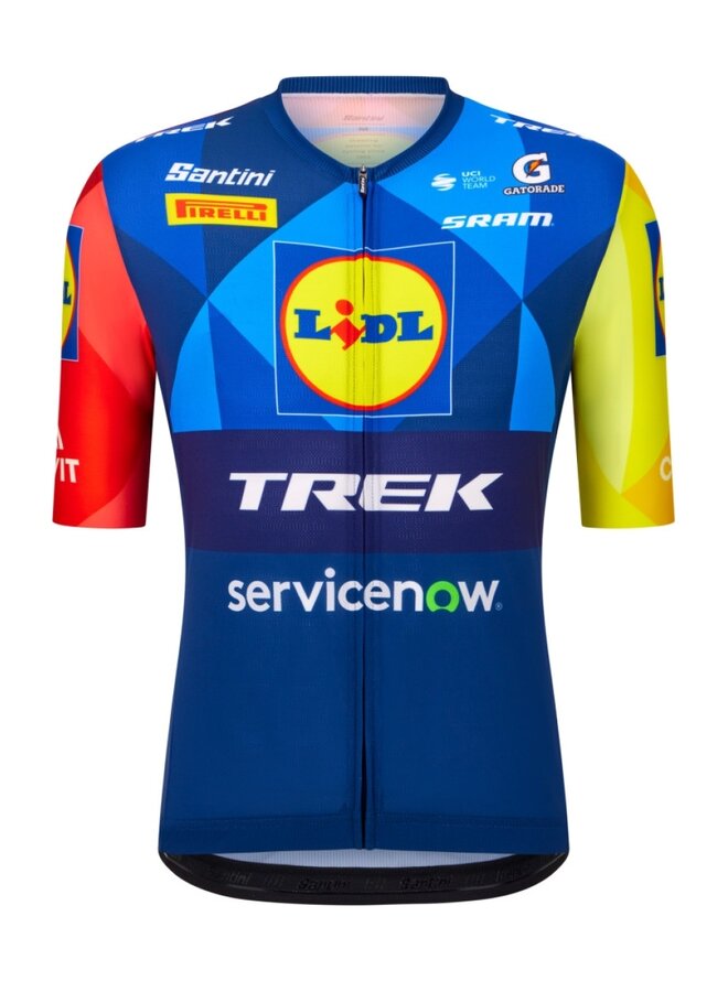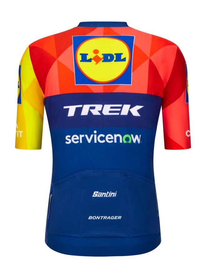 Tento cyklistický dres, ktorý je súčasťou kolekcie Lidl-Trek 2026, je výsledkom inovatívneho výskumu, ktorý dokonale vyvažuje pohodlie a výkon. Dres s klasickým strihom navrhnutým na optimalizáciu výkonu kombinuje vysokokvalitné technické materiály, aby poskytoval maximálne výsledky pri každej jazde. Predná časť vyrobená z ľahkej tkaniny poskytuje svieži pocit a voľnosť pohybu, zatiaľ čo zadná časť a golier zo super priedušnej tkaniny pomáhajú udržiavať pokožku v suchu aj pri najintenzívnejšom úsilí. Boky a rukávy vyrobené z hladkého mikrovlákna aerodynamicky obopínajú telo a zaisťujú pohodlné nosenie bez obmedzení. Neopracované okraje rukávov ponúkajú čistý, bezšvový povrch, znižujúce trenie pre vyššiu aerodynamickú účinnosť. Vnútorná guma na zadnom leme zaisťuje, že dres zostane bezpečne na svojom mieste, zatiaľ čo úplne krytý predný zips sa hladko kĺže a chráni pokožku pred podráždením. Tento dres s praktickým trojitým zadným vreckom na nevyhnutné drobnosti a reflexnými detailmi pre lepšiu viditeľnosť za zhoršených svetelných podmienok je navrhnutý pre tých, ktorí hľadajú štýl a funkčnosť. - Klasický strih - Ľahká tkanina vpredu - Super priedušná tkanina na chrbte a golieri - Boky a rukávy z hladkého mikrovlákna - Neopracované okraje rukávov - Vnútorná guma na zadnom leme - Plne krytý predný zips - Trojité zadné vrecko - Reflexné detaily na zadnej straneDetaily