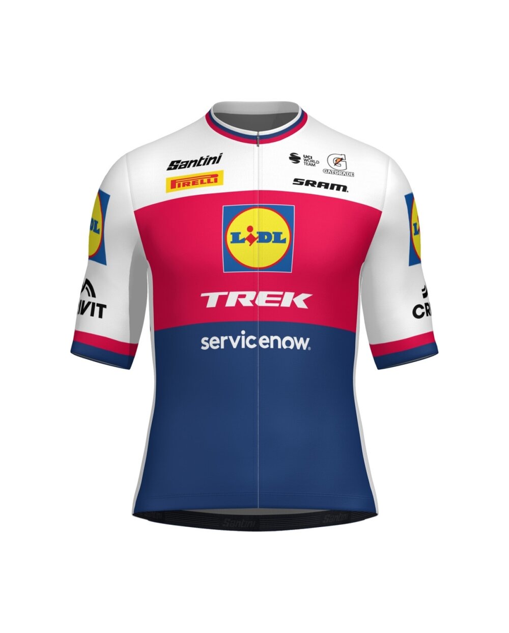 Tento cyklistický dres, ktorý je súčasťou kolekcie Lidl-Trek 2026, je výsledkom inovatívneho výskumu, ktorý dokonale vyvažuje pohodlie a výkon. Dres s klasickým strihom navrhnutým na optimalizáciu výkonu kombinuje vysokokvalitné technické materiály, aby poskytoval maximálne výsledky pri každej jazde. Predná časť vyrobená z ľahkej tkaniny poskytuje svieži pocit a voľnosť pohybu, zatiaľ čo zadná časť a golier zo super priedušnej tkaniny pomáhajú udržiavať pokožku v suchu aj pri najintenzívnejšom úsilí. Boky a rukávy vyrobené z hladkého mikrovlákna aerodynamicky obopínajú telo a zaisťujú pohodlné nosenie bez obmedzení. Neopracované okraje rukávov ponúkajú čistý, bezšvový povrch, znižujúce trenie pre vyššiu aerodynamickú účinnosť.Vnútorná guma na zadnom leme zaisťuje, že dres zostane bezpečne na svojom mieste, zatiaľ čo úplne krytý predný zips sa hladko kĺže a chráni pokožku pred podráždením. Tento dres s praktickým trojitým zadným vreckom na nevyhnutné drobnosti a reflexnými detailmi pre lepšiu viditeľnosť za zhoršených svetelných podmienok je navrhnutý pre tých, ktorí hľadajú štýl a funkčnosť.