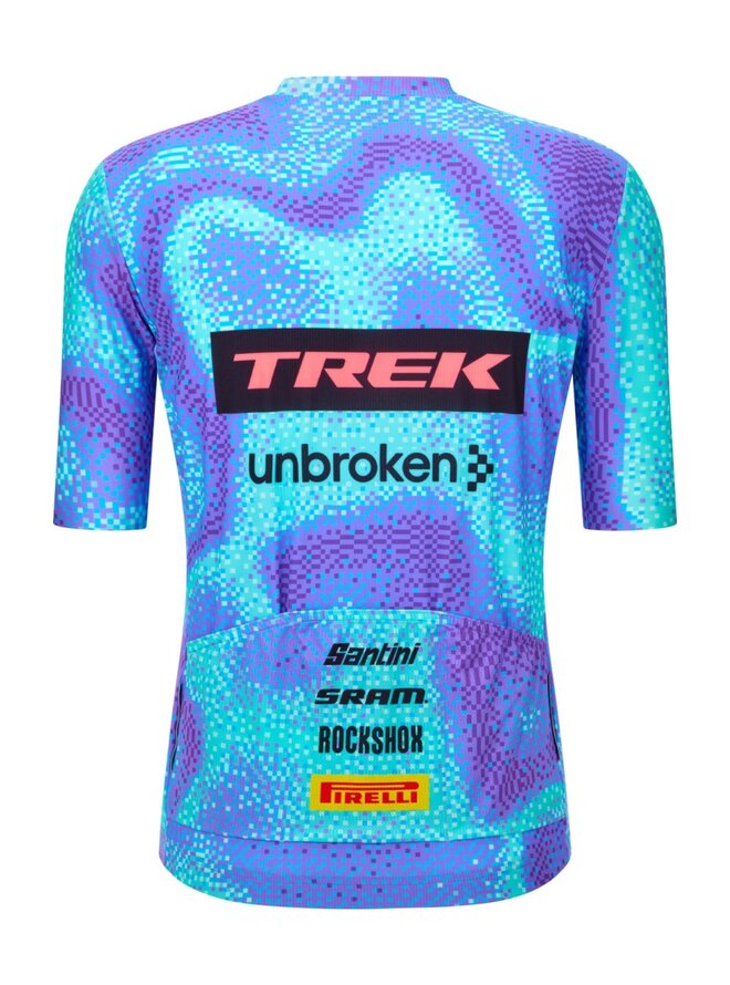 Dres s krátkym rukávom Trek Factory Racing 2026 stelesňuje dokonalú rovnováhu medzi aerodynamikou a pohodlím – navrhnutý pre cyklistov, ktorí požadujú maximálny výkon. Ľahká, priedušná predná tkanina poskytuje vynikajúcu reguláciu teploty, zatiaľ čo zadná strana a rukávy z hladkého mikrovlákna dokonale padnú na telo a pohybujú sa s vami bez obmedzení. Surovo strihané rukávy ponúkajú bezšvový povrch, znižujú odpor vzduchu a zlepšujú aerodynamickú účinnosť.Každý detail je navrhnutý pre efektivitu: vnútorný elastický pás na leme drží dres bezpečne na mieste aj počas dynamických fáz, zatiaľ čo skrytý predný zips zaisťuje pohodlie a jednoduché používanie. Trojdielne zadné vrecko je priestranné a ľahko dostupné – ideálne na tyčinky, gély alebo drobné doplnky. Reflexné detaily na zadnej strane dotvárajú dizajn a zaisťujú viditeľnosť a bezpečnosť za všetkých svetelných podmienok.