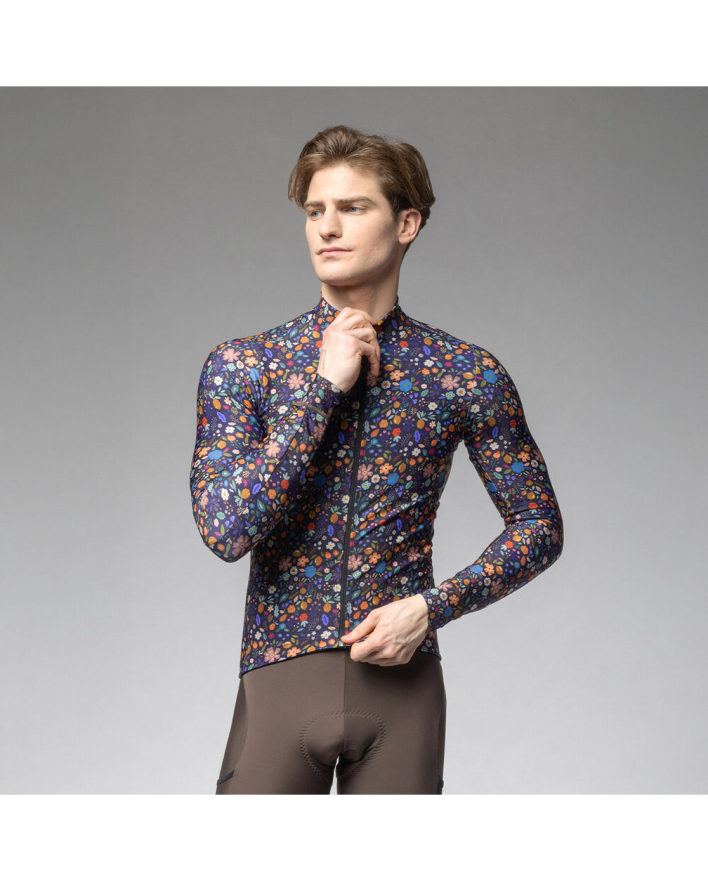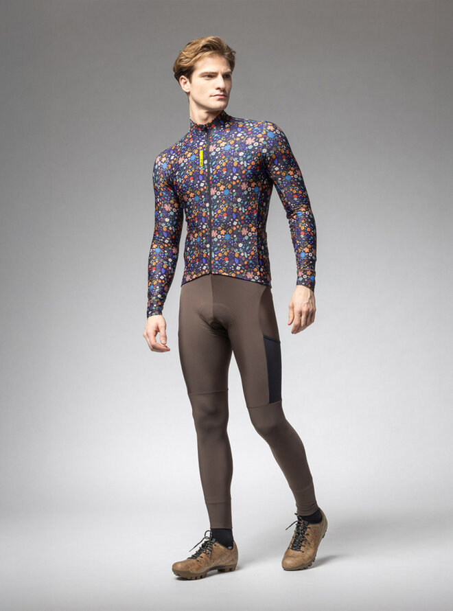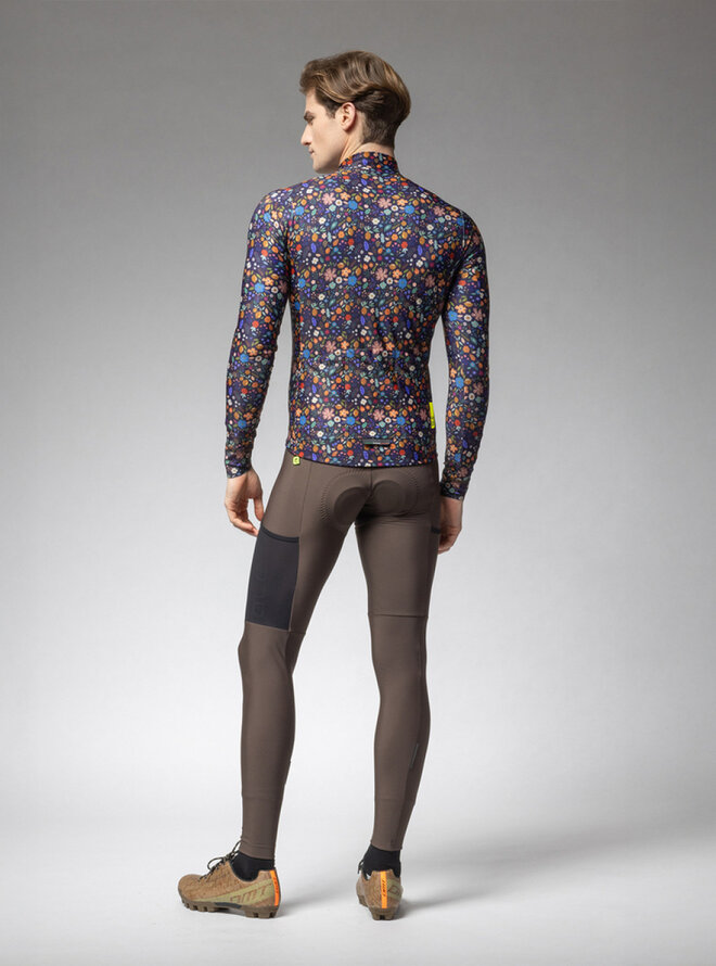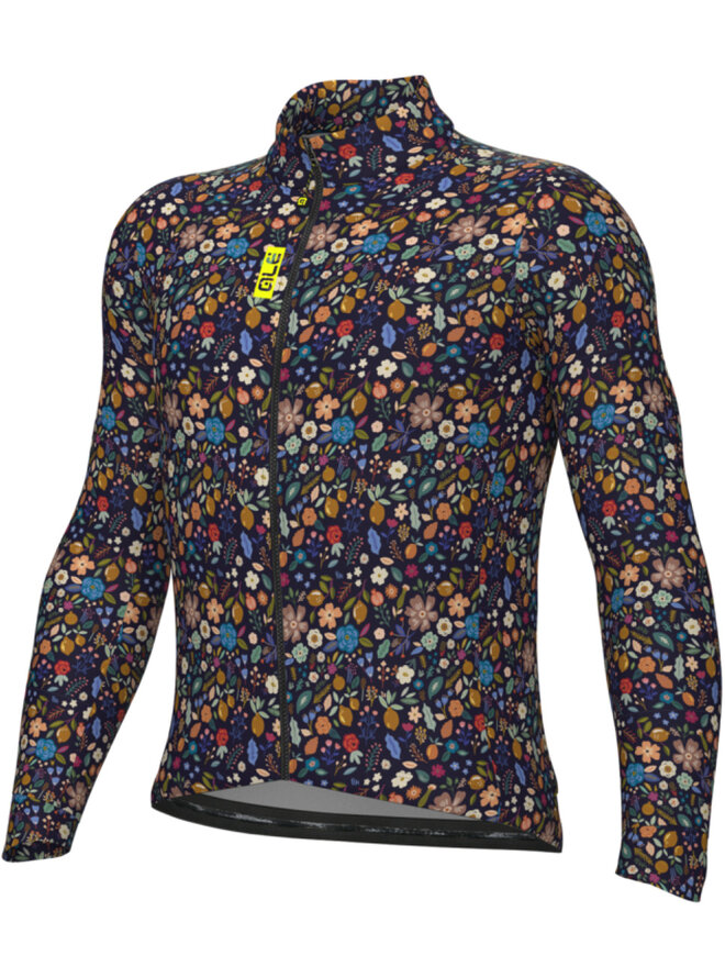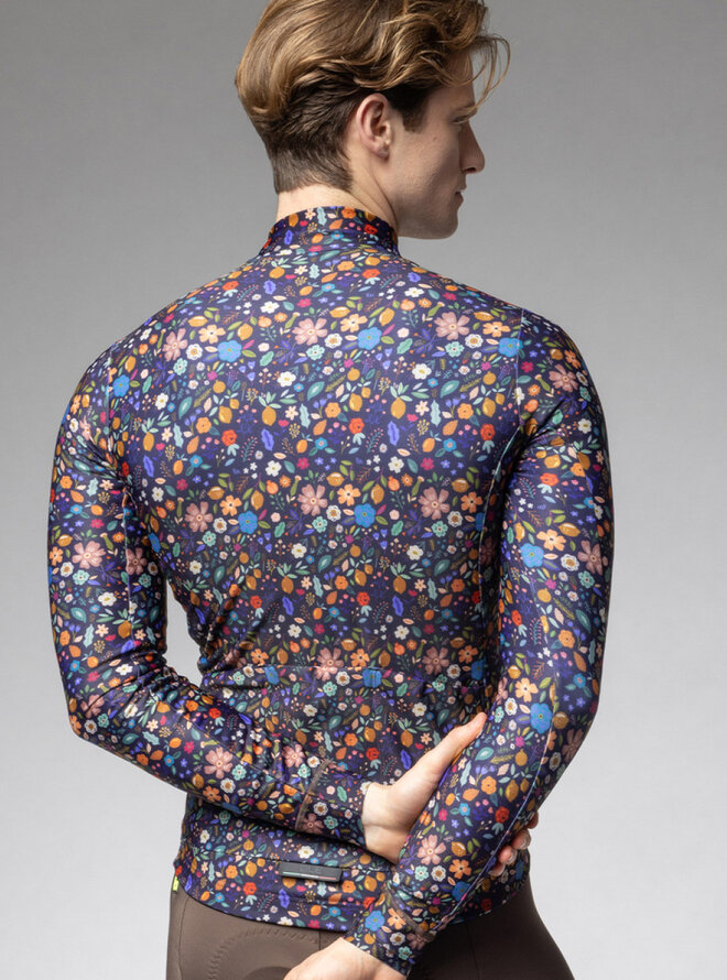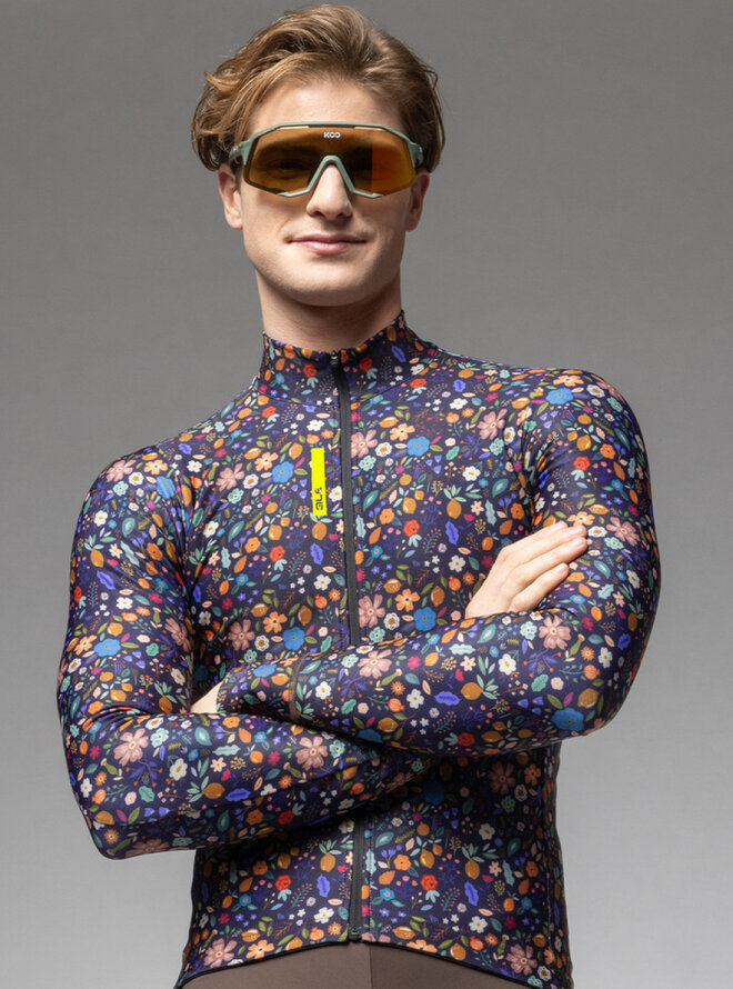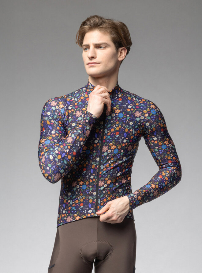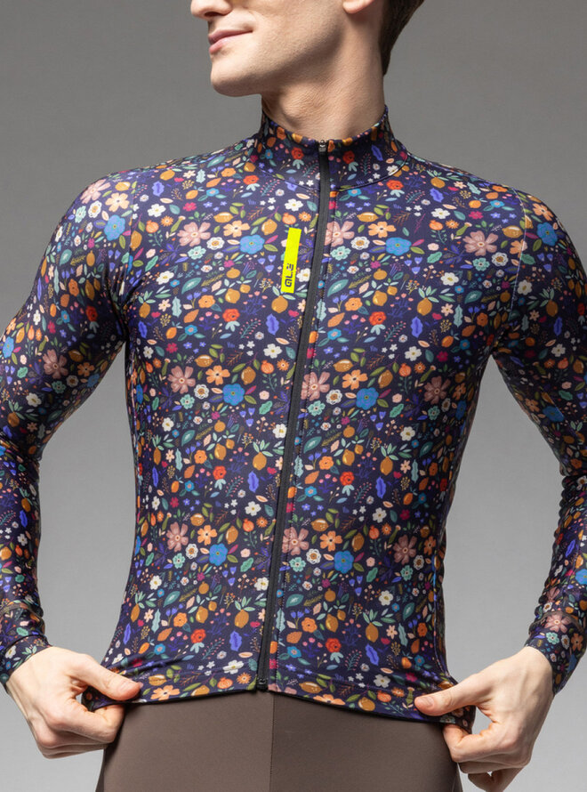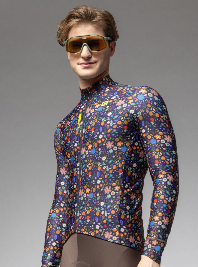 Cyklistický dres s dlhým rukávom zimný - PRAGMA FLOWERY - čierna/viacfarebná
