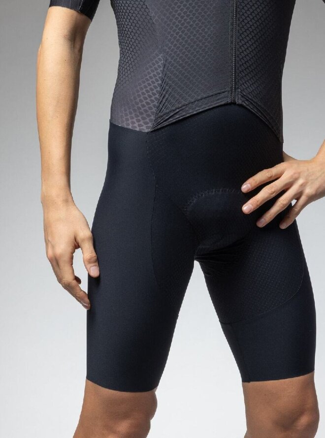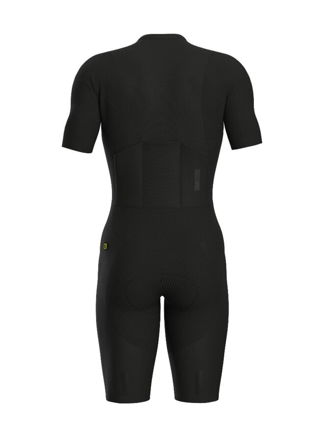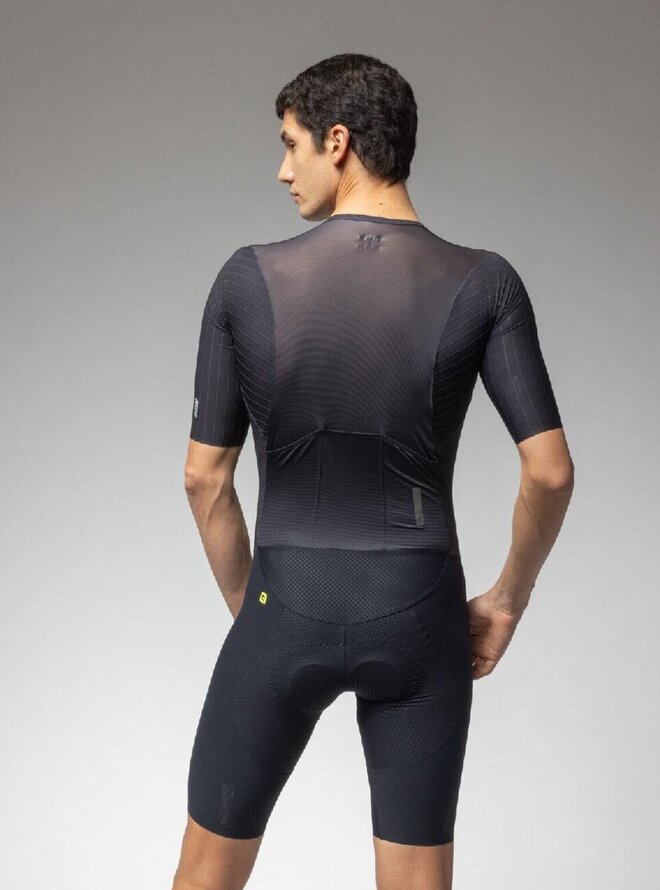 Na prednej strane má kombinéza R-EV1 Eagle plne rozopínací zips, ktorý umožní pohodlné obliekanie. Zadná strana je vybavená dvojicou vreciek, kam schováte všetko, čo budete pri Vašom závodnom nasadení potrebovať. Kombinéza bola vyvinutá s dôrazom na podporenie výkonu, preto je opatrená špeciálnou 3D štruktúrou, ktorá poskytuje vynikajúcu oporu Vašim svalom počas výkonu vďaka perfektne vyladenej kompresii. Jej aerodynamické vlastnosti sú tým najlepším, čo môžete vo svete cyklistiky nájsť, kombinácia ergonomického strihu, rukávov bez lemov s aerodynamickými doplnkami robí z kombinézy R-EV1 Eagle skutočnú zbraň proti času.