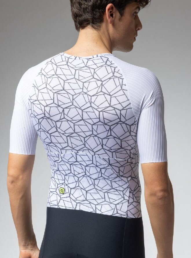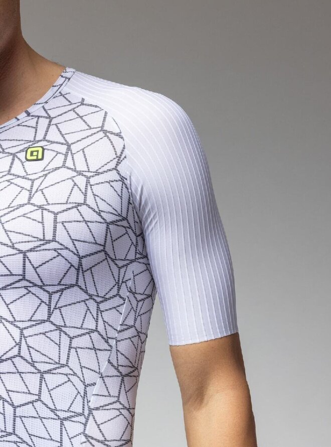 Rukávy sú zhotovené z inovatívnej 3D štruktúrovanej tkaniny s kanálikmi, ktorá je navrhnutá pre maximálny aerodynamický efekt. Táto technológia podporuje optimálne prúdenie vzduchu okolo paží, minimalizuje odpor a zvyšuje rýchlosť aj účinnosť pri jazde na bicykli aj behu. Štruktúra kanálikov zároveň pomáha znižovať turbulenciu, čo sa pozitívne premieta do celkového výkonu.