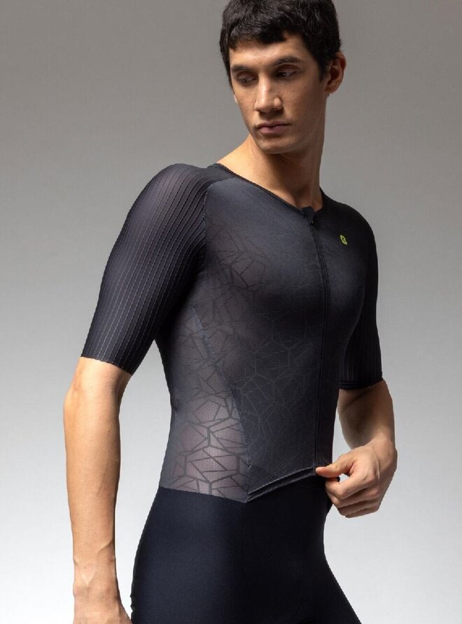 Rukávy sú zhotovené z inovatívnej 3D štruktúrovanej tkaniny s kanálikmi, ktorá je navrhnutá pre maximálny aerodynamický efekt. Táto technológia podporuje optimálne prúdenie vzduchu okolo paží, minimalizuje odpor a zvyšuje rýchlosť aj účinnosť pri jazde na bicykli aj behu. Štruktúra kanálikov zároveň pomáha znižovať turbulenciu, čo sa pozitívne premieta do celkového výkonu.