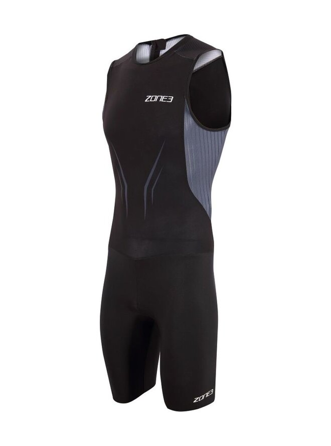 Pánsky Aeroforce‑X Sleeveless Trisuit od značky Zone3 je vysoko výkonný triatlonový overal bez rukávov navrhnutý pre športovcov, ktorí chcú maximálny výkon v každej disciplíne – plávanie, cyklistiku aj beh. Tento aero dizajn vznikol v spolupráci so špecialistami na aerodynamiku a bol testovaný v aerodynamickom tuneli aj vo výkonových centrách, aby poskytoval najnižší možný odpor vzduchu a vyššiu rýchlosť v cyklistickej časti bez obetovania komfortu pri plávaní a behu. Triatlonový overal využíva viacero špičkových materiálov, ktoré spolu vytvárajú optimálny balans medzi aerodynamikou, priedušnosťou, komfortom a pokrytím. Panely s technológiou Aeroforce‑X minimalizujú odpor vzduchu a disponujú vodoodpudivou nano‑úpravou, zatiaľ čo mäkké a rýchloschnúce tkaniny na prednej a zadnej strane poskytujú pohodlie a efektívne odvádzanie vlhkosti. Tri‑Lite vložka je navrhnutá špeciálne pre triatlon – poskytuje pohodlie pri cyklistike, rýchlo schne a neobmedzuje pri plávaní ani behu. Laserom rezané otvory a integrované silikónové gripy na nohách zabezpečujú pevné usadenie bez skĺznutia a zlepšujú aerodynamický profil.Detaily