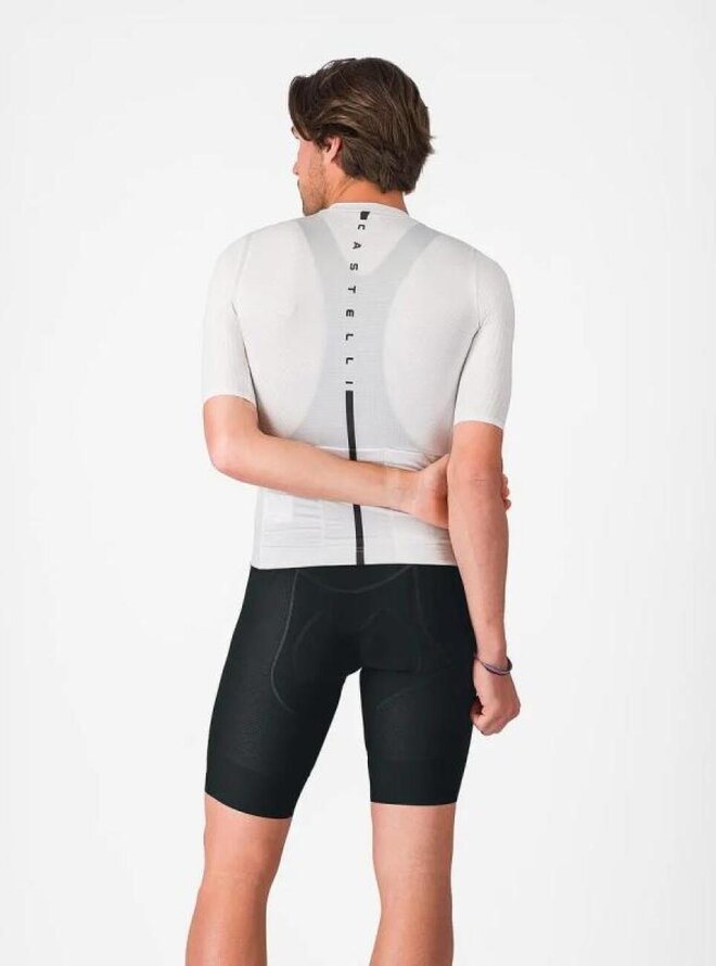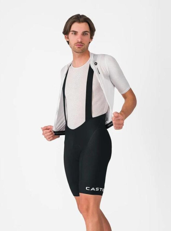 Tieto krátke nohavice sme vyvinuli tak, aby sme ponúkli maximum technológií z našej najvyššej rady pre profesionálov za prijateľnú cenu. Sú to skvelé pohodlné výkonnostné krátke nohavice, ktoré zvládnu aj víkendové preteky. Väčšia časť nohavíc je vyrobená z texturovaného materiálu Vortex. Použili sme široké, elastické ukončenie nohavíc s integrovaným silikónom, vďaka čomu nohavice bezpečne a pohodlne sedia. Vložka KISS Air2 je takmer taká pohodlná, ako naša top vložka, no za oveľa priaznivejšiu cenu. Vylepšili sme traky: na chrbte sú sieťovinové kvôli priedušnosti, predná časť trakov je z ľahkého elastického materiálu, vďaka čomu sú pohodlné aj pri celodennom nosení. Neuchopiteľným prvkom, ktorý oceníte najviac je naša schopnosť skombinovať to do strihu, ktorý dokonale sedí a to vďaka vývojovému tímu Castelli.