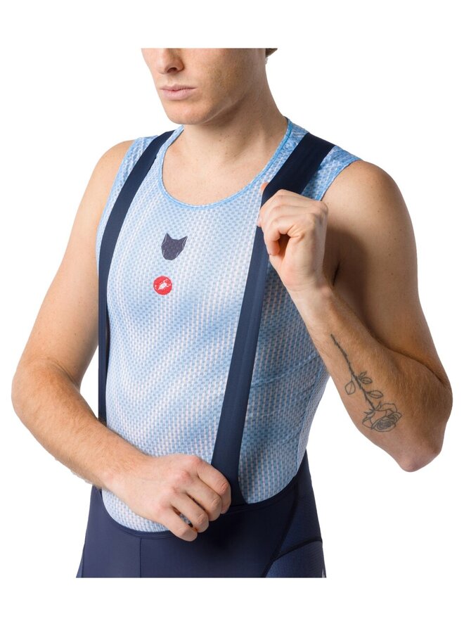 Široké, elastické zakončenie nohavíc s integrovaným silikónom zaručuje pohodlné a pevné držanie. Vložka KISS Air2 poskytuje rovnaký komfort ako špičková vložka z najvyšších modelov, no s dôrazom na výborný pomer ceny a kvality. Castelli prepracovalo aj traky: zadná časť je z priedušnej sieťoviny, zatiaľ čo samotné traky sú z ľahkého, elastického materiálu a zostávajú pohodlné aj po hodinách v sedle. Nehmotnou, no veľmi cenenou vlastnosťou je dokonale padnúci strih, výsledok práce tímu konštruktérov strihov Castelli.
