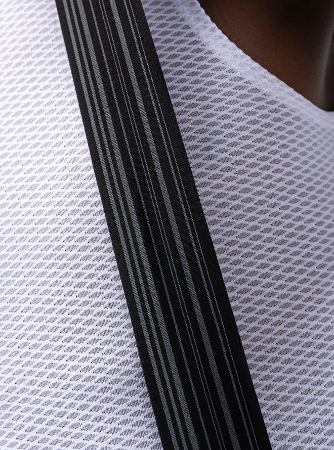 Nové traky obsahujú ergonomické ramenné pásy s rozšírenou šírkou, spracované technológiou bezšvového zakončenia pre lepšiu prispôsobivosť. Do ich štruktúry je zakomponované grafénové vlákno, ktoré podporuje termoreguláciu, neutralizuje pachy a zabraňuje zadržiavaniu vlhkosti. Zadný otvor navyše zlepšuje odvádzanie telesného tepla počas náročných jázd.