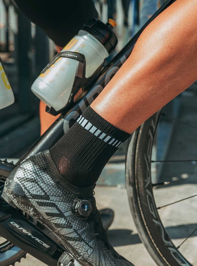 Cyklistické ponožky klasické - LOGO Q-SKIN - biela/čierna