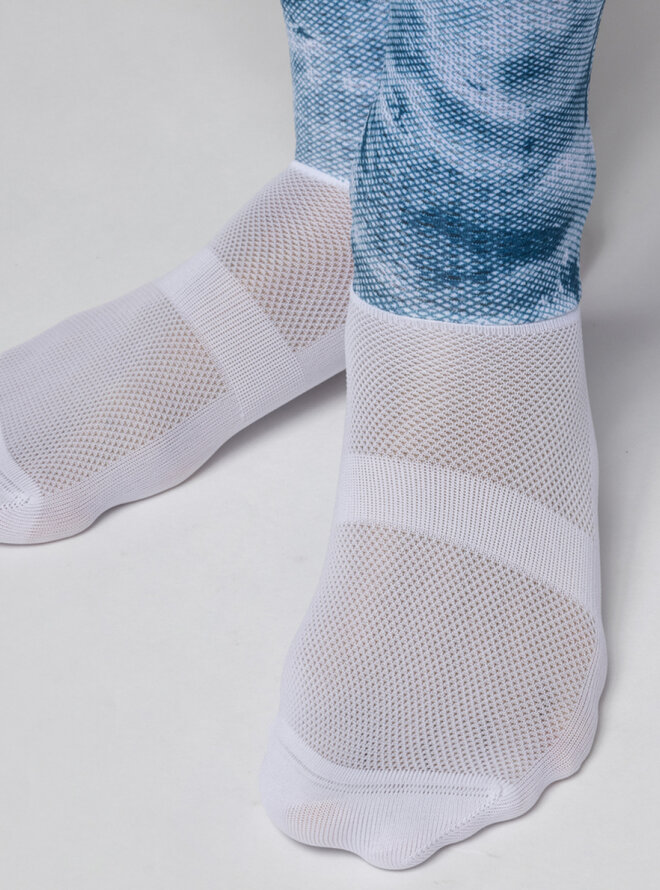 Aerodynamické ponožky TYPHOON sú perfektnou voľbou na dosiahnutie najlepšieho času. Jej vrchná časť je vysoká 18 cm a je vyrobená z materiálu Aero Cell, ktorý svojou šesťhrannou štruktúrou výrazne prispieva k tomu, že ponožky majú minimálny odpor vzduchu. Zakončenie lemu je Raw Cut so stabilizačným systémom Grip Dots, ktorý udržuje ponožky vždy v rovnakej polohe.