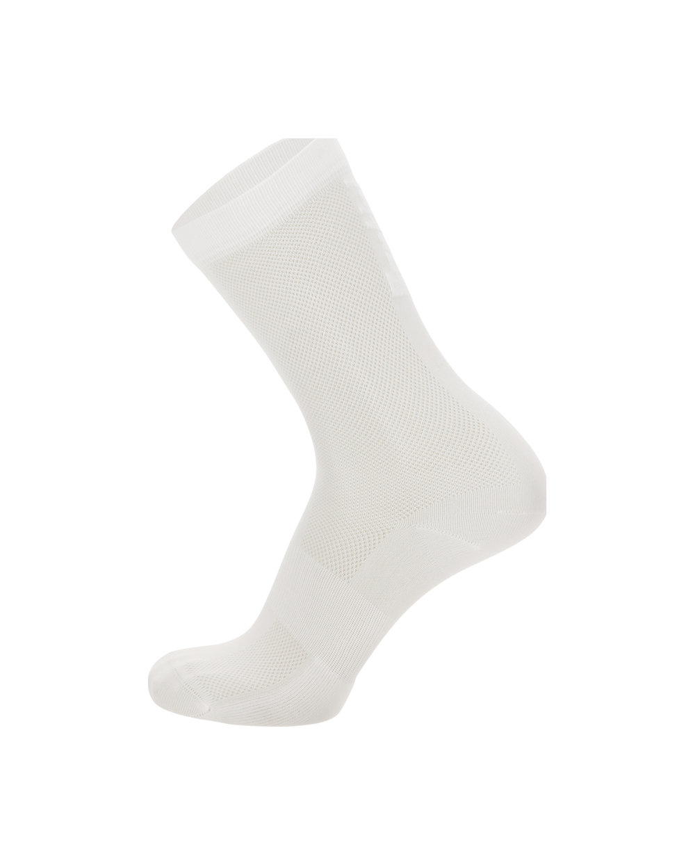 SANTINI Puro sú vysokoprofilové cyklistické ponožky v čistom a elegantnom dizajne, ktoré doplnia vašu súpravu SANTINI a poskytnú vám výnimočné pohodlie. Vysokoprofilová manžeta podporuje moderný štýl a zároveň zachováva dokonalé prispôsobenie, aby sa ponožky nezošmykli z nohy. Kvalitný výrobný materiál sľubuje dlhú životnosť a priedušnosť.
