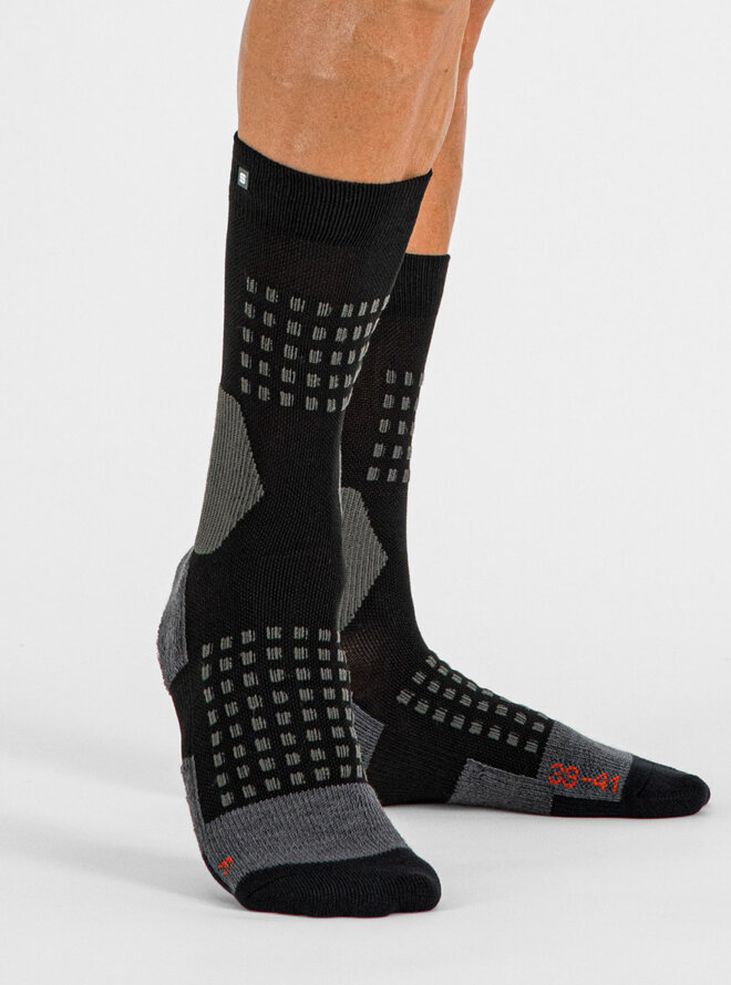 Zimné ponožky Apex sú ideálne na športovanie v prechodnom a zimnom období. Sú vyhotovené z Prolen® priadzí, ktoré udržujú chodidlo v suchu a teple. Na špici, priehlavku, päte, členku a holennej kosti sú spevnené zosilneným úpletom, ktorý poskytuje väčšiu podporu svalom počas športovania.