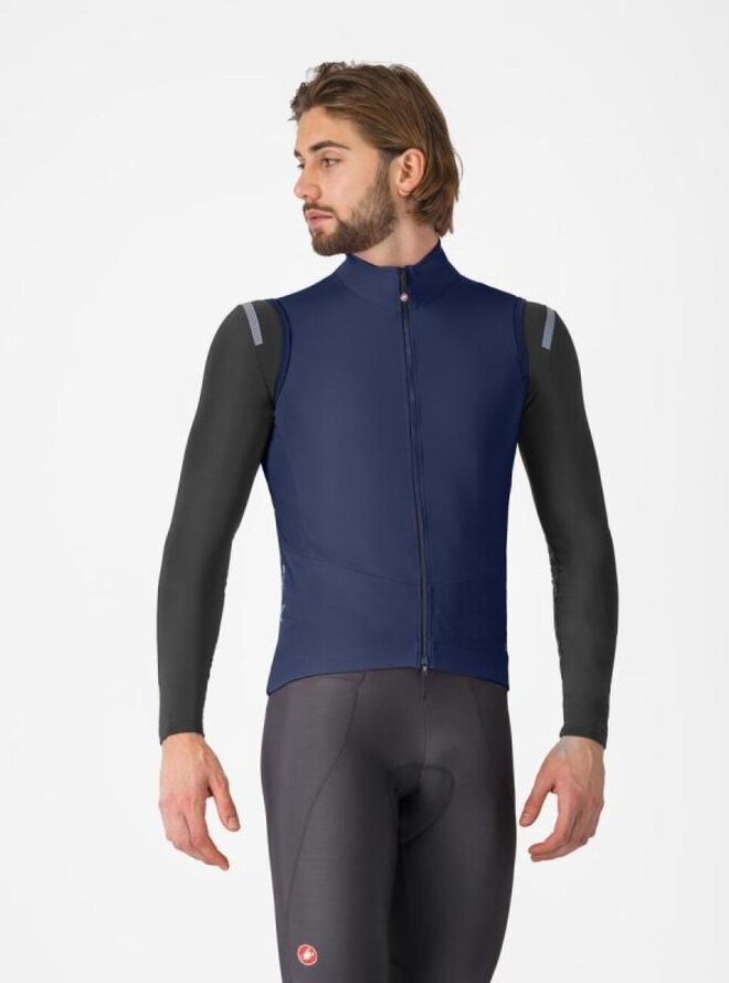 Takto všestrannou ju robí technológia materiálu Castelli Ristretto. Materiál je navrhnutý s priepustnosťou vzduchu, takže je vetroodolný, ale prepúšťa veľmi malé množstvo vzduchu, vďaka čomu odvádza viac potu a udržiava vás v suchu. Predná strana je vyrobená zo stredne ťažkej verzie materiálu Ristretto, zatiaľ čo zadná strana je z elastickej tkaniny pre ešte väčšiu priedušnosť. Zostanete v suchu, čo znamená, že sa dokážete môžete zahriať aj s tenšou vestou.