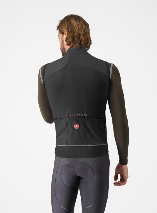 Takto všestrannou ju robí technológia materiálu Castelli Ristretto. Materiál je navrhnutý s priepustnosťou vzduchu, takže je vetroodolný, ale prepúšťa veľmi malé množstvo vzduchu, vďaka čomu odvádza viac potu a udržiava vás v suchu. Predná strana je vyrobená zo stredne ťažkej verzie materiálu Ristretto, zatiaľ čo zadná strana je z elastickej tkaniny pre ešte väčšiu priedušnosť. Zostanete v suchu, čo znamená, že sa dokážete môžete zahriať aj s tenšou vestou.
