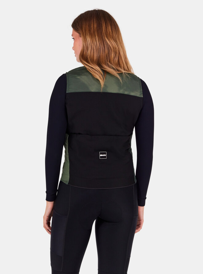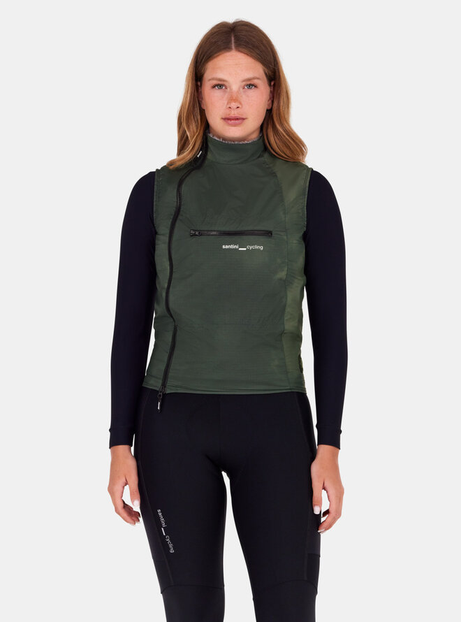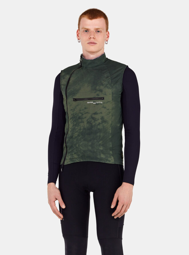 SANTINI Alpha Insulated je inovativní unisex vesta pro náročné cyklisty, kteří hledají spolehlivou ochranu v přechodném počasí bez omezení volnosti pohybu. Vnější vrstva z větruvzdorné, lehké tkaniny chrání před větrem a chladem, zatímco vnitřní izolace Polartec® Alpha™ s Merino vlnou udržuje teplotní komfort bez přehřívání nebo nadměrného objemu.
