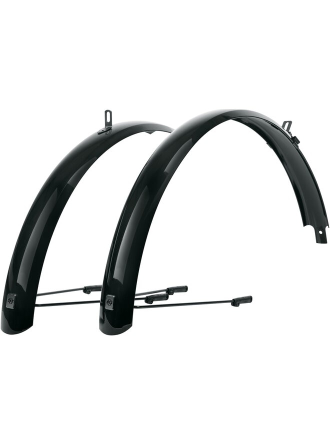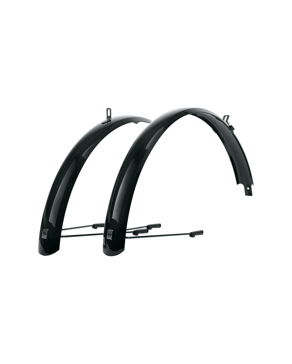 SKS Bluemels Basic je sada blatníkov vyrobená z robustnej sendvičovej konštrukcie. Ich lesklý dizajn vie zaujať, spoľahlivo chráni pred nečistotami a striekajúcou vodou. Vďaka flexibilnej sendvičovej konštrukcii, v ktorej sú ultrajemné hliníkové pásy zapustené do plastového povlaku, sú blatníky extrémne robustné, tuhé a odolné proti korózii. Slúžia ako vynikajúca ochrana vďaka montáži tesne pri plášti. Či už na poľných cestách alebo lesných cestách, blatníky BLUEMELS Basic ponúkajú vynikajúcu všestrannú ochranu. Bezpečnostný systém ESC odpojí vzpery v prípade zachytenia vetiev medzi špice kolesa, aby sa koleso nemohlo zaseknúť.
