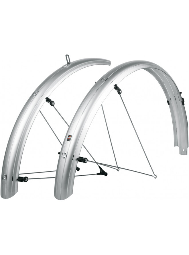 SKS Bluemels Basic je sada blatníkov vyrobená z robustnej sendvičovej konštrukcie. Ich lesklý dizajn vie zaujať, spoľahlivo chráni pred nečistotami a striekajúcou vodou. Vďaka flexibilnej sendvičovej konštrukcii, v ktorej sú ultrajemné hliníkové pásy zapustené do plastového povlaku, sú blatníky extrémne robustné, tuhé a odolné proti korózii. Slúžia ako vynikajúca ochrana vďaka montáži tesne pri plášti. Či už na poľných cestách alebo lesných cestách, blatníky BLUEMELS Basic ponúkajú vynikajúcu všestrannú ochranu. Bezpečnostný systém ESC odpojí vzpery v prípade zachytenia vetiev medzi špice kolesa, aby sa koleso nemohlo zaseknúť.
