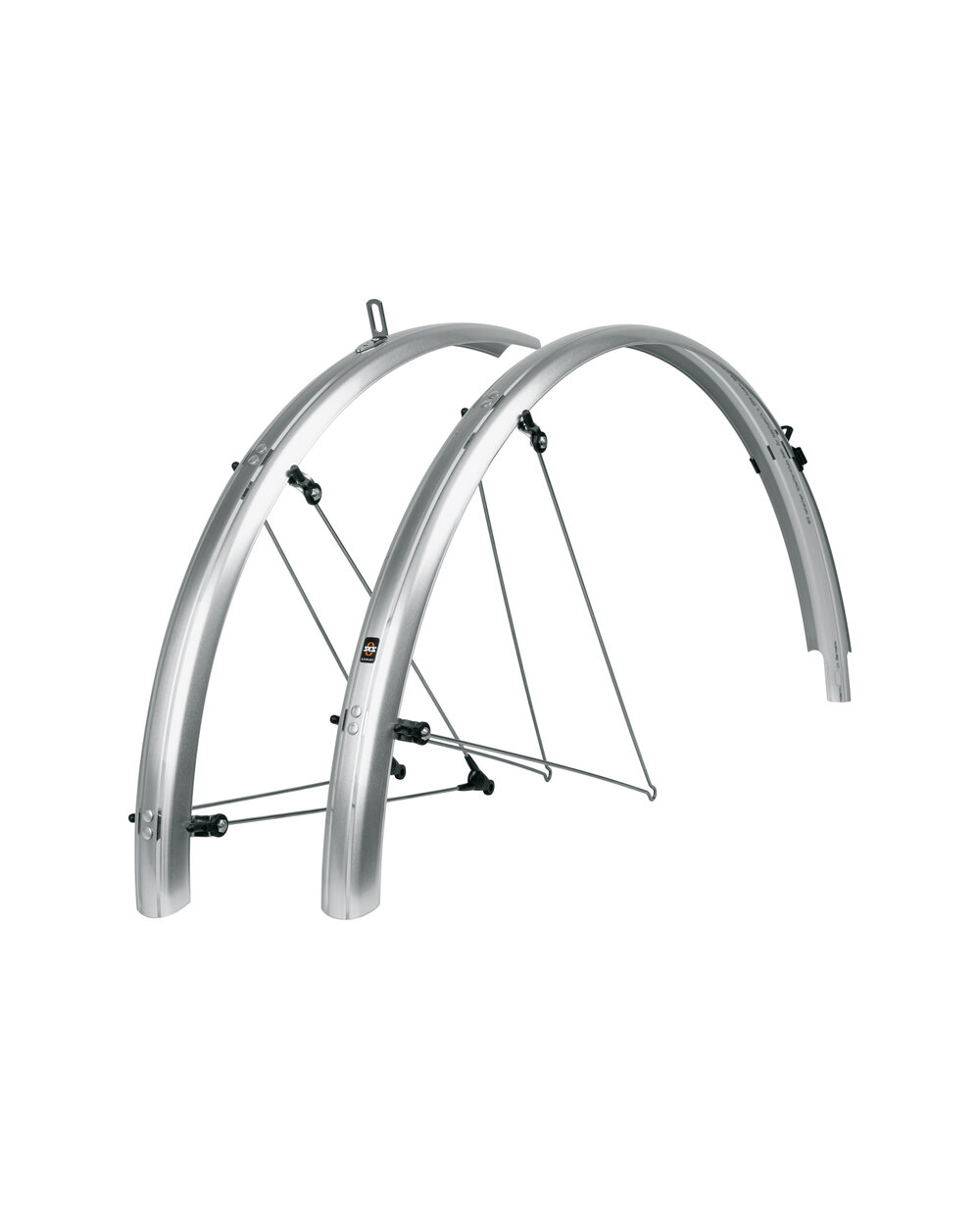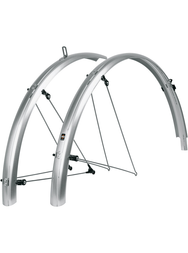 SKS Bluemels Basic je sada blatníkov vyrobená z robustnej sendvičovej konštrukcie. Ich lesklý dizajn vie zaujať, spoľahlivo chráni pred nečistotami a striekajúcou vodou. Vďaka flexibilnej sendvičovej konštrukcii, v ktorej sú ultrajemné hliníkové pásy zapustené do plastového povlaku, sú blatníky extrémne robustné, tuhé a odolné proti korózii. Slúžia ako vynikajúca ochrana vďaka montáži tesne pri plášti. Či už na poľných cestách alebo lesných cestách, blatníky BLUEMELS Basic ponúkajú vynikajúcu všestrannú ochranu. Bezpečnostný systém ESC odpojí vzpery v prípade zachytenia vetiev medzi špice kolesa, aby sa koleso nemohlo zaseknúť.