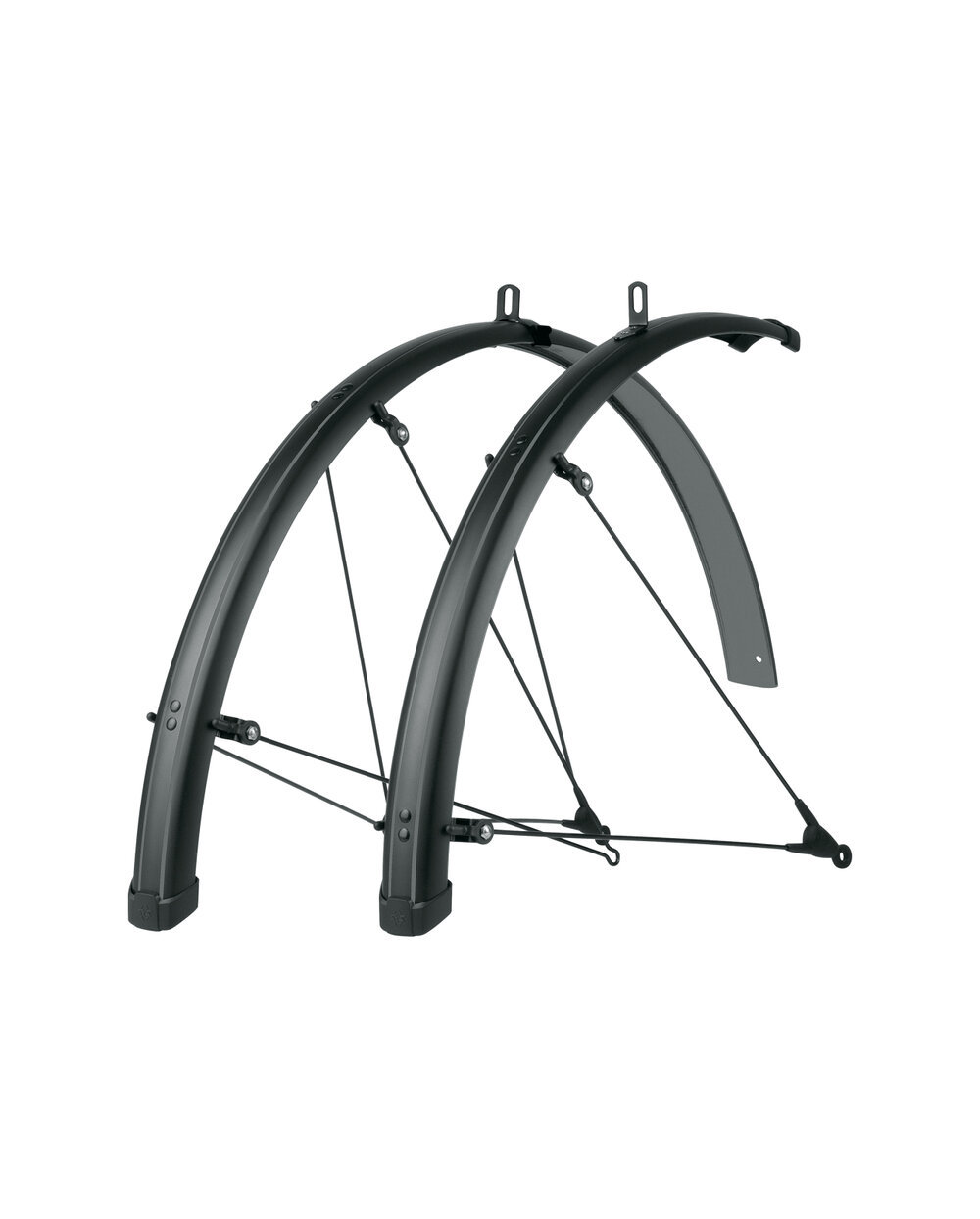 Teraz ešte širší, dlhší a štýlovejší! Čierno matná sada blatníkov BLUEMELS STRIPES od SKS so šedými pruhmi dodá bicyklu skvelý vzhľad. Vďaka čiernym pätkám a chrániču okrajov s logom SKS je čistý vzhľad jednoducho dokonalý. Rozšírené profily zaisťujú optimálnu ochranu proti striekajúcej vode a nečistotám.