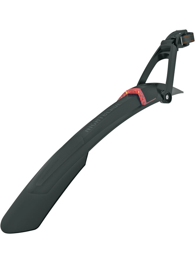 Blatník Nightblade je ideálnym riešením pre horské bicykle. Poskytuje nielen vynikajúcu ochranu proti striekajúcej vode, ale zároveň zvyšuje bezpečnosť vďaka integrovanému zadnému svetlu s dobíjateľnou batériou. Svetlo je možné jednoducho vybrať a nabiť cez USB. Vďaka jednoduchému upínaciemu systému je blatník kompatibilný s takmer všetkými typmi sedloviek, pričom jeho nastaviteľnosť pomocou dvoch kĺbov zabezpečuje dokonalé prispôsobenie každému bicyklu.