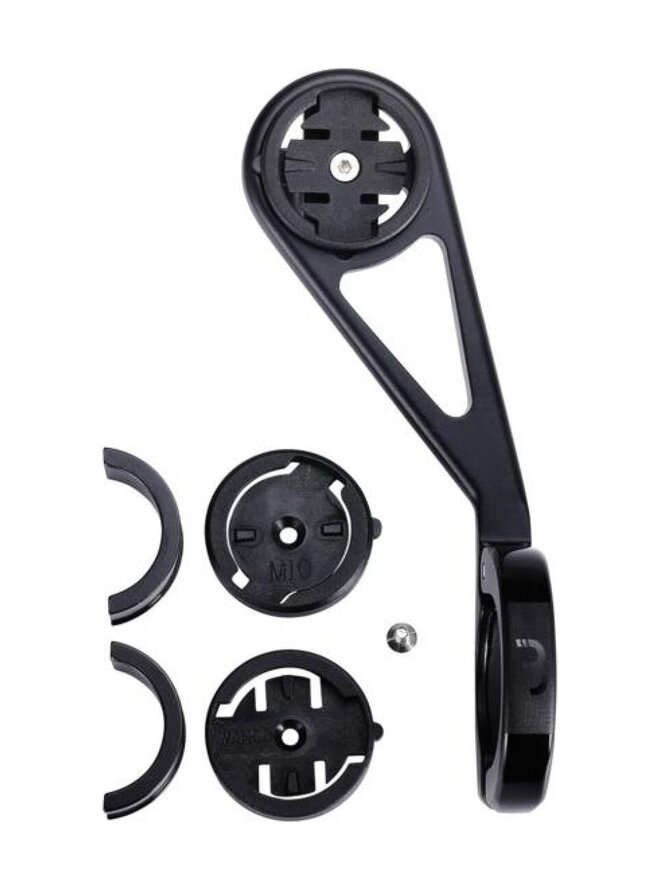Ľahký držiak z hliníka 6061 T6 opracovaný CNC, kompatibilný s cyklopočítačmi. Jednoduchá montáž na riadidlá s priemerom 25,4/31,8 mm. Vhodný pre všetky počítače Garmin quartermount, Mio cyklo a Wahoo. Konzola pre GoPro sa nachádza na spodnej strane. Hmotnosť (g): 62. Výška x Šírka x Dĺžka (mm): 40 x 55 x 140. Detaily