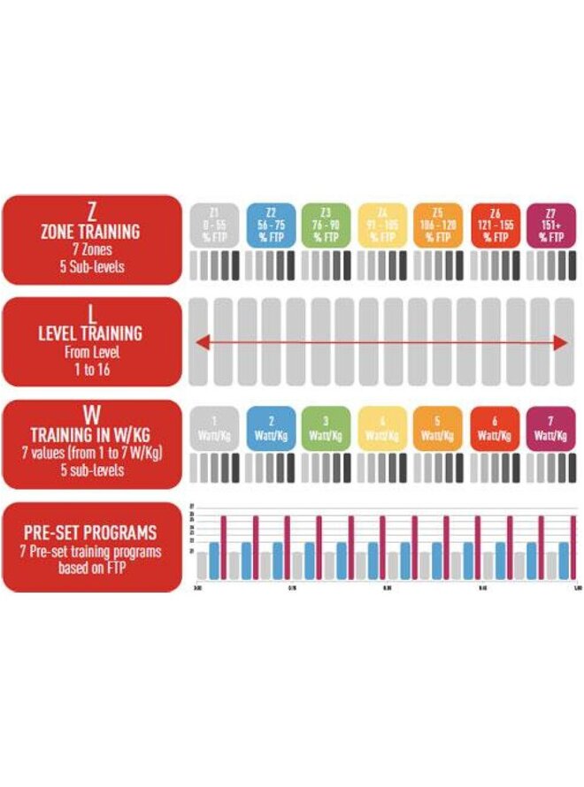 Vykonajte špecifické cvičenia rýchlo a bez námahy, bez potreby počiatočného nastavenia tréningových aplikácií alebo softvéru. Vyberte si preferovaný tréningový režim priamo z tlačidiel zariadenia. Dostupné zónové trénovanie od Z1 do Z7, založené na FTP. Tréningy watt/kg v rozsahu od 1 do 7. Cvičenie na úrovni odporu, od 1 do 16. Sedem prednastavených tréningových programov založených na FTP. Kompatibilné so všetkými trenažérmi s priamym pohonom, kolesovými trenažérmi a interaktívnymi valcami pomocou protokolu ANT+ FE-C. Ľahko sa inštaluje na všetky riadidlá pomocou zadného držiaka Garmin alebo montážnych systémov O-krúžkov, ktoré sú súčasťou balenia. Vyrobené z vodeodolných a potu odolných materiálov.Detaily
