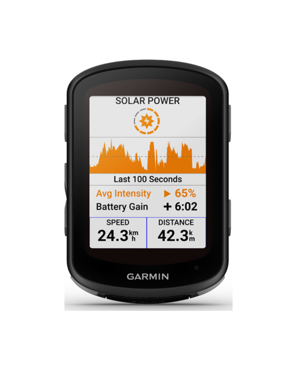 Nová generácia najpredávanejších cyklopočítačov z kompaktnej série pre všetkých náročných cyklistov. Edge 540 Solar je vďaka výbave a novému typu GPS priíjimača multi-band GNSS bude použitie a záznam trasy (dát) ešte spoľahlivejšie kdekoľvek sa budete nachádzať. Edge 540 si zakladá na osvedčenej výbave starších modelových sérií a navyše prináša množstvo vylepšení a nových funkcií špecifických pre cyklistický tréning. Kompaktné rozmery a vysoký štandard výbavy s farebným displejom je doplnený o nové prepracované funkcie fyziologických metrík - REAL-TIME STAMINA vám umožní sledovať úroveň vyčerpania v reálnom čase, POWER GUIDE poskytne lepší náhľad na dosahované a dosiahnuteľné výkonnostné ciele (W) s pripojeným wattmetrom. Ďalšou novinkou vo výbave sú tzv. Cielené adaptívne tréningy TARGETED ADAPTIVE COACHING pre cyklo-tréning v závislosti od aktuálnej kondície, plánovaných jázd s cieľom "vyladiť" formu na najbližšie preteky. Na jazdu s Edge 540 Solar budete vždy pripravený okamžite, bez zbytočného nastavovania. Predovšetkým vďaka novému prepracovanému manažmentu nastavení a správe dát s podrobným nastavením zobrazovania dát v závislosti od typu aktivity (cestná cyklistika, MTB, indoor a pod.), pripojených snímačov a tiež na základe obľúbenosti. Nezáleží aký druh cyklistiky uprestnostňujete Edge 540 Solar bude pridanou hodnotou každej jazdy. Edge 540 Solar poskytne predĺženú výdrž batérie až do 32/60 hodín* so > solárnym dobíjaním* + s možnosťou externého napájania vďaka voliteľnej externej batérií >Garmin charge™ power pack .Detaily