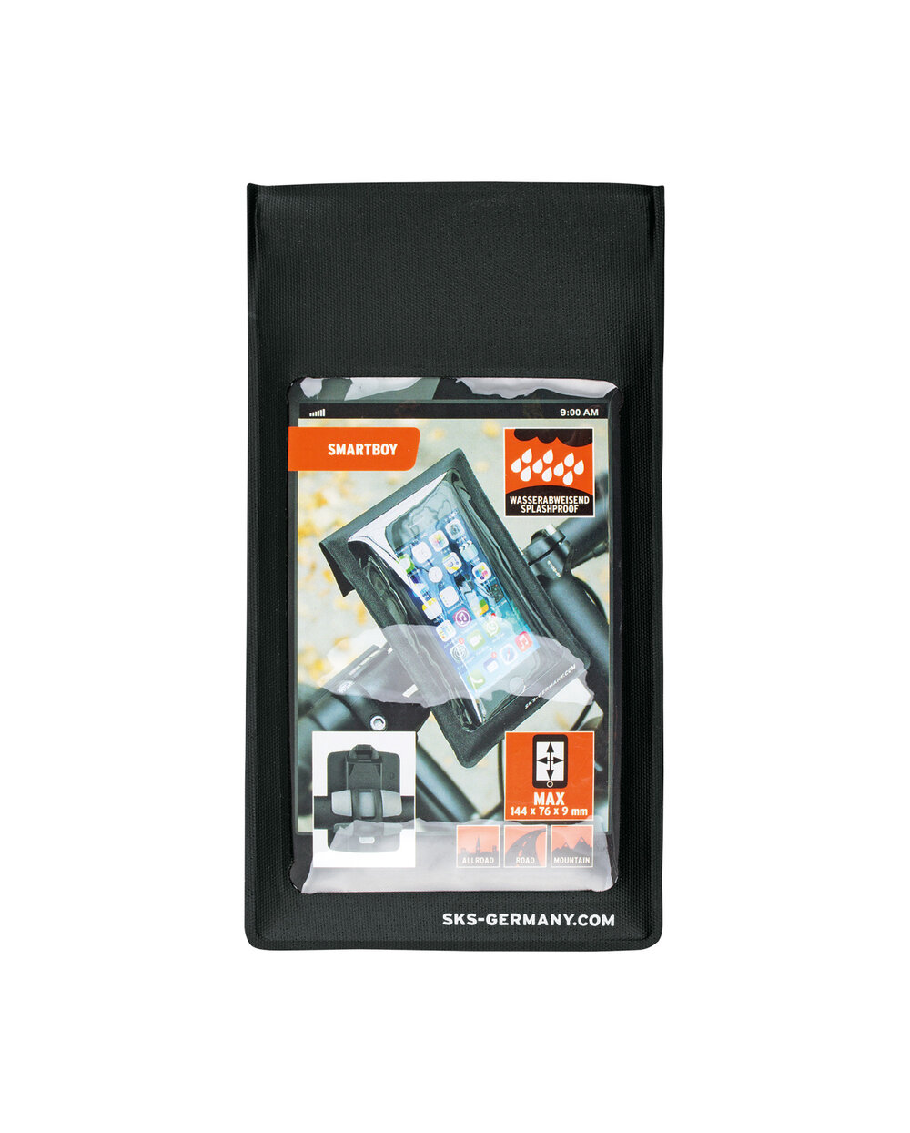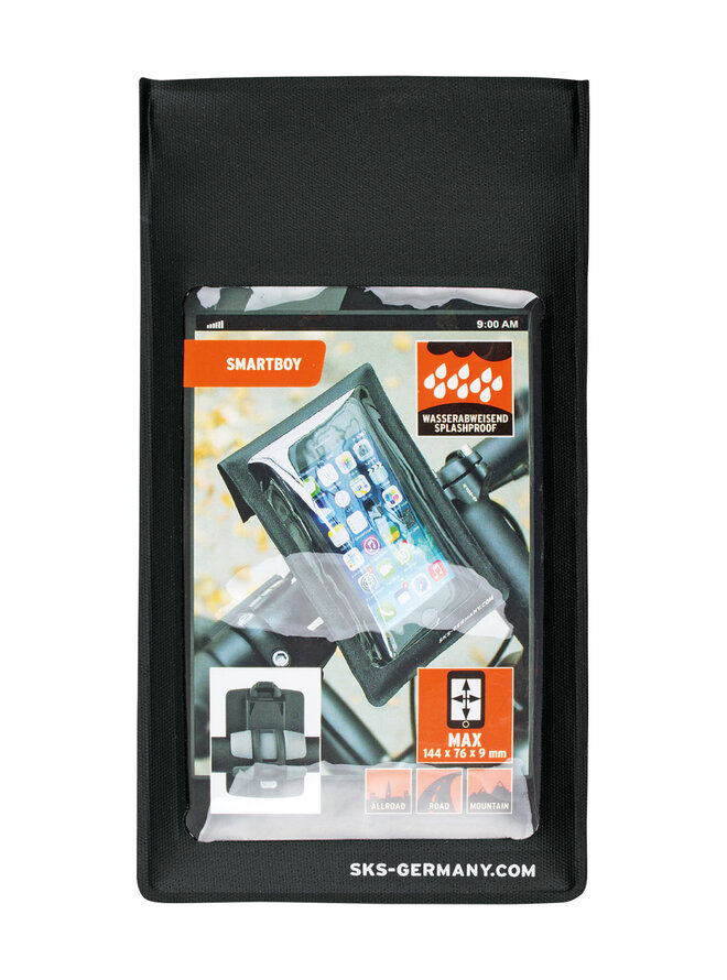 Samostatný nepremokavý obal na smartphone, ktorý sa dá použiť na držiak Smartboy. Priehľadná fólia, cez ktorú ide telefón používať.