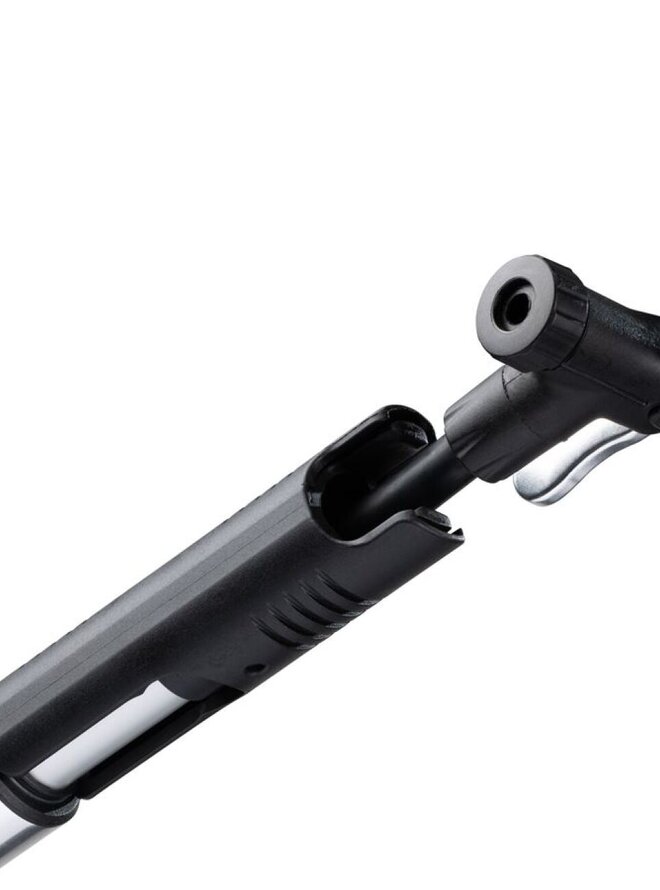 Jedinečná ľahká minipumpa, ktorá sa pohodlne zmestí do batohu a s ktorou môžete nafúknuť bicykel aj na trase. Pumpa je vybavená pogumovanou základňou, sklápacím nožným stojanom pre skvelú stabilitu počas nafukovania, sklopnou rukoväťou, skrytou hadicou vo vnútri tela a patentovanou magnetickou hlavou pre oba typy ventilov. Hmotnosť 171 g Dĺžka 325 mm Maximálny tlak 110 psi/7,5 bar Držiak rámu nie je súčasťou dodávky.Detaily