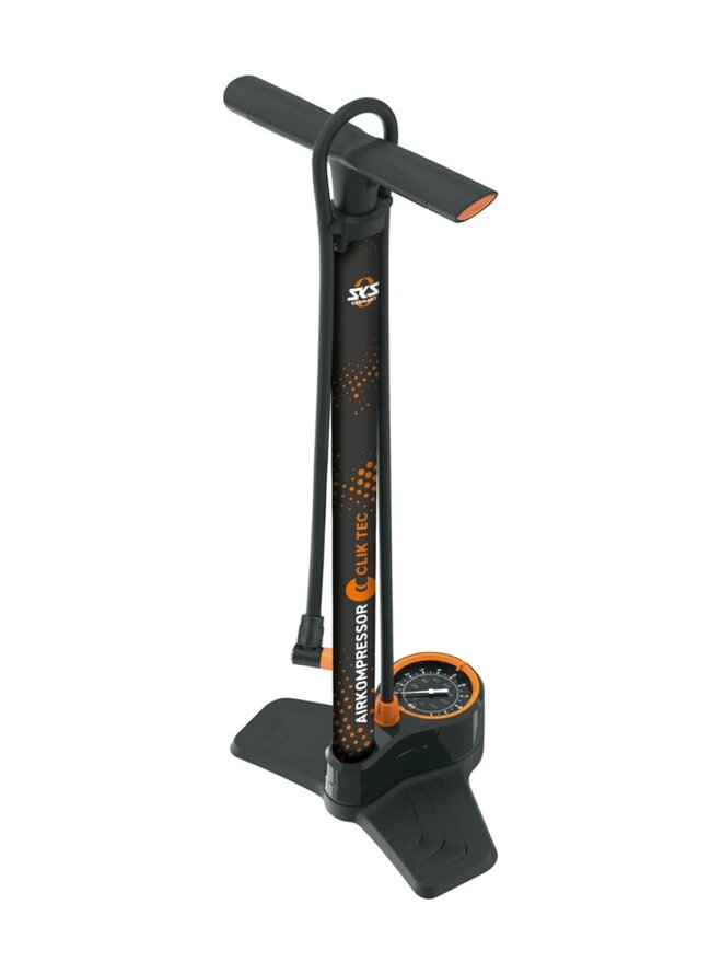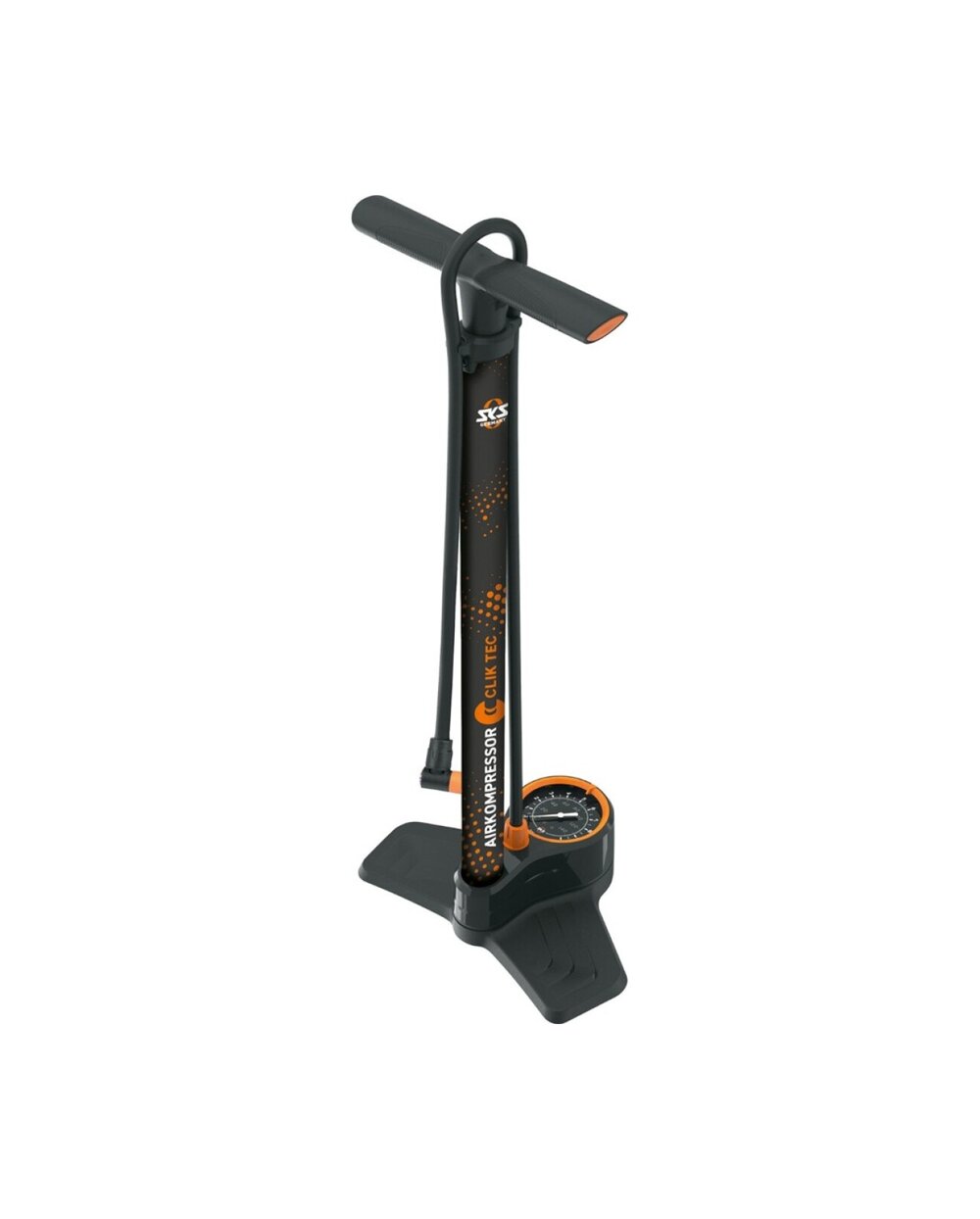 SKS Airkompressor Clik Tec 10.0 je vysokokvalitná podlahová pumpa určená pre cyklistov. Má robustnú oceľovú trubku, stabilnú plastovú základňu, veľký analógový manometer pre presné meranie tlaku a dlhú vysokotlakovú hadicu, vďaka čomu je pumpovanie pohodlné a efektívne.Detaily
