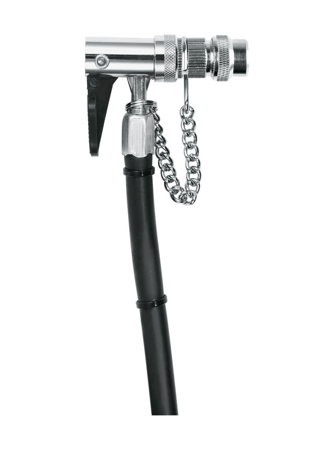 Náhradná hadička pre pumpu SKS Rennkompressor je vybavená sklopnou páčkou pre jednoduché pripojenie k ventilom.