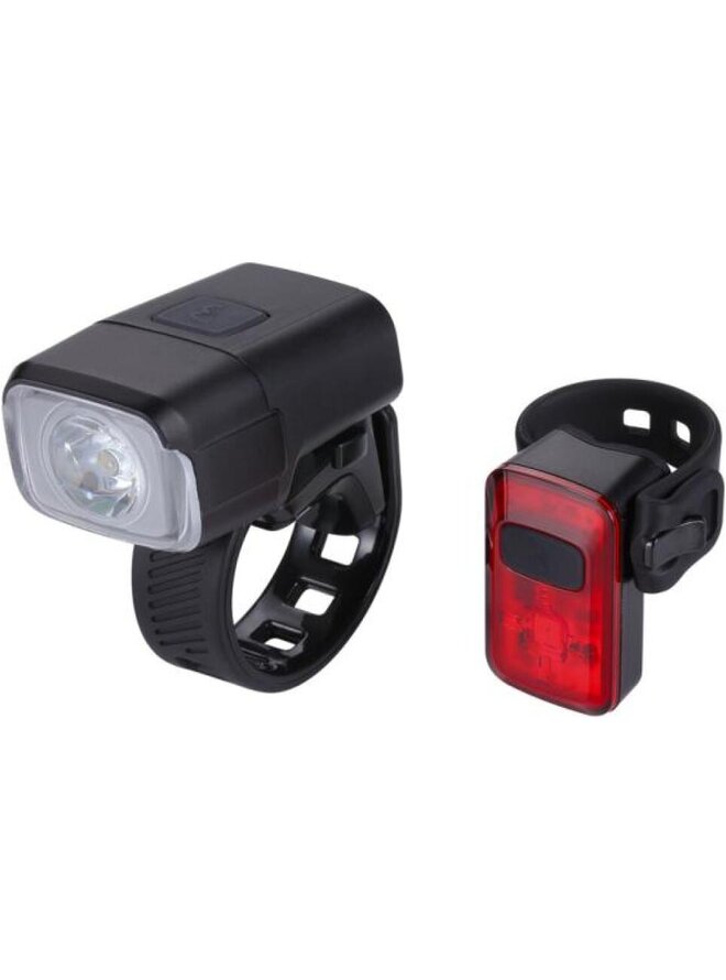 Sada obsahuje predné svetlo NanoStrike 400 BLS-130 a zadné svetlo Spark