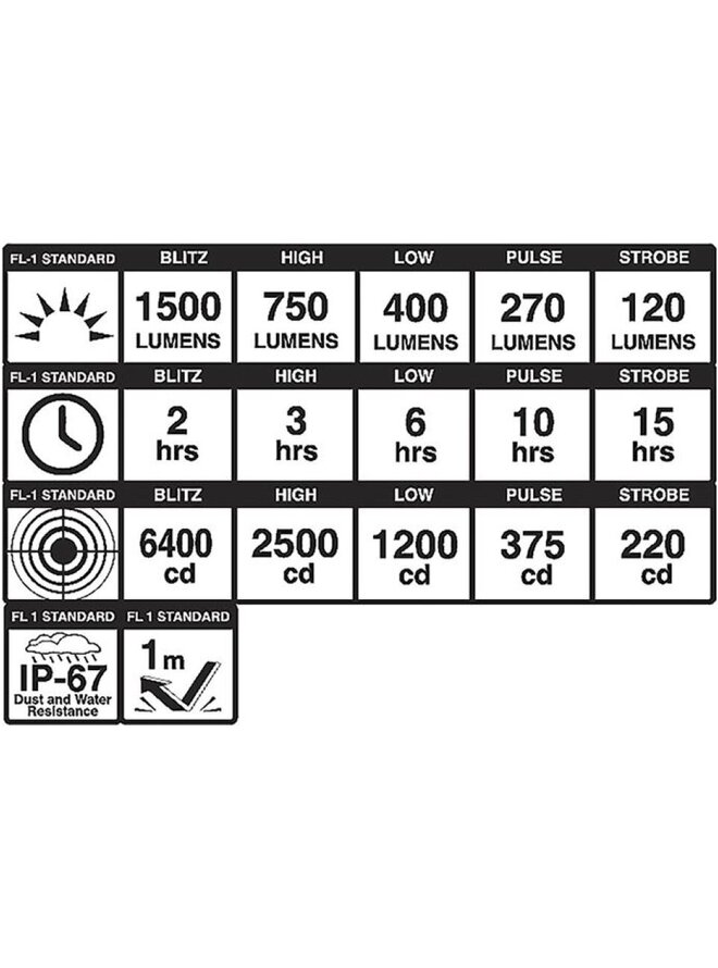 Super výkonné, ale ľahké svetlo Blackburn s 1500 lúmenmi a nabíjaním cez USB-C port. S týmto svetlom si užijete jazdu na bicykli v noci ako cez deň - pri plnom výkone 1500 lumenov vydrží batéria 2 hodiny. Súčasťou balenia je okrem držiaka na riadidlá aj držiak na prilbu. Potrebujete sa o polnoci vybehať v lese alebo dochádzate do práce aj mimo letnej sezóny? Na tohto malého diabla sa môžete spoľahnúť. JAS 1500 lumenov REŽIMY Blitz 1500 lúmenov/2h, Vysoký 750 lúmenov/3h, Nízky 400 lúmenov/6h, Pulz 270 lúmenov/10h, Stroboskop 120 lumenov/15h VLASTNOSTI 2x Osram 3737 LED, telo z eloxovaného hliníka, držiak GoPro, vodeodolné podľa štandardu IP-67 NABÍJANIE USB-C (5 hodín), indikátor nabitia batérie HMOTNOSŤ 140 gDetaily