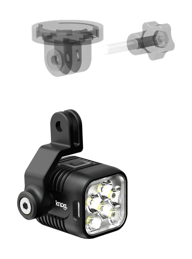 Knog Blinder E-X GoPro Mount je kompaktný držiak určený na montáž predného svetla série Knog Blinder E alebo Blinder X. Umožňuje pripevniť svetlo priamo pod držiak cyklopočítača alebo navigácie, vďaka čomu vytvára čistý a usporiadaný vzhľad kokpitu bicykla. Držiak využíva štandard uchytenia typu GoPro, takže je kompatibilný s väčšinou moderných držiakov, ktoré tento systém podporujú. Svetlo sa vďaka tomu nachádza presne v osi riadidiel a zaisťuje optimálne osvetlenie vozovky bez potreby ďalších úchytov na riadidlách. Konstrukcia držiaka je pevná, ľahká a odolná voči vibráciám, čo zaručuje stabilitu aj pri jazde v náročných podmienkach. Montáž aj demontáž sú jednoduché, takže svetlo možno rýchlo pripevniť alebo zložiť podľa potreby. Tento držiak je určený výhradne pre predné svetlá Knog Blinder E-X a nie je vhodný pre zadné osvetlenie. Je ideálny pre cyklistov, ktorí chcú mať svetlo integrované do riadidiel bez zbytočných káblov či objímok.Detaily