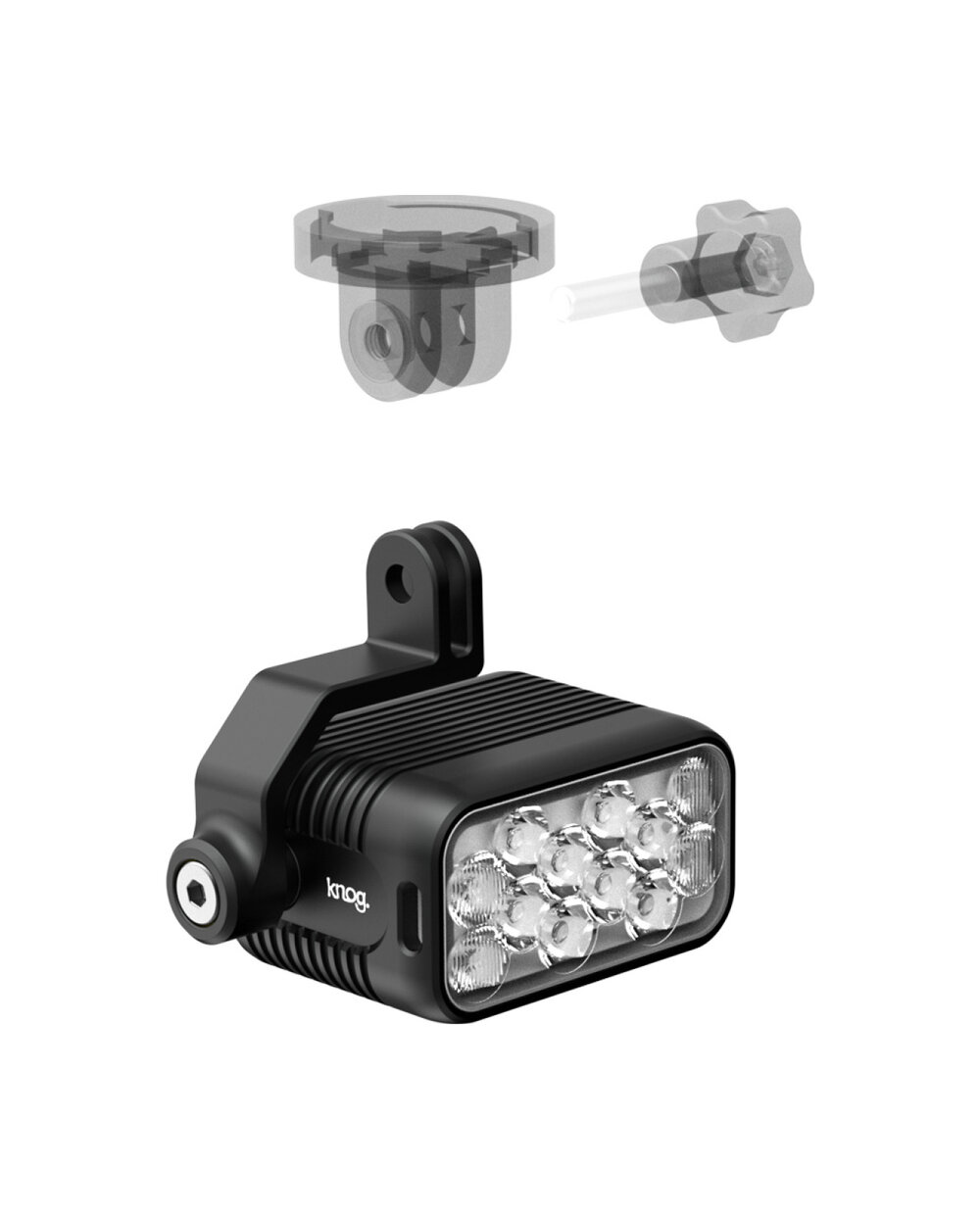 Držák pro světla KNOG Blinder E a X určený pro Gopro, Garmin a další podobné držáky cyklo počítačů a navigací, které mají možnost uchycení ze spodu.Detaily
