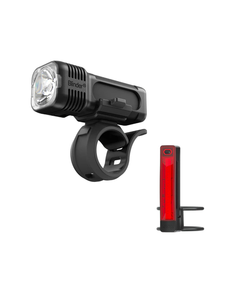 Knog Blinder 400 & Plus je dokonale vyvážená sada svetiel, ktorá spája silné predné osvetlenie s inteligentným a flexibilným zadným svetlom. Predné svetlo Blinder 400 je kompaktné, no odolné – ponúka 400 lumenov a koncentrovaný 18° lúč, ktorý výborne prereže tmu a poskytuje dennú farebnú teplotu svetla, čím znižuje únavu očí počas nočných jázd.