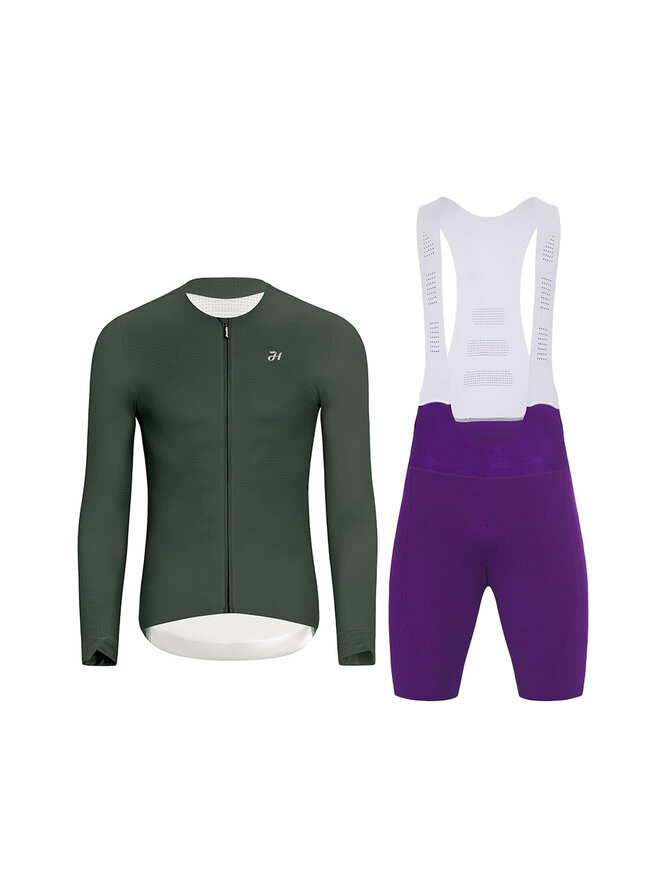 Cyklistický dlhý dres a nohavice - ELEVATE - fialová/zelená