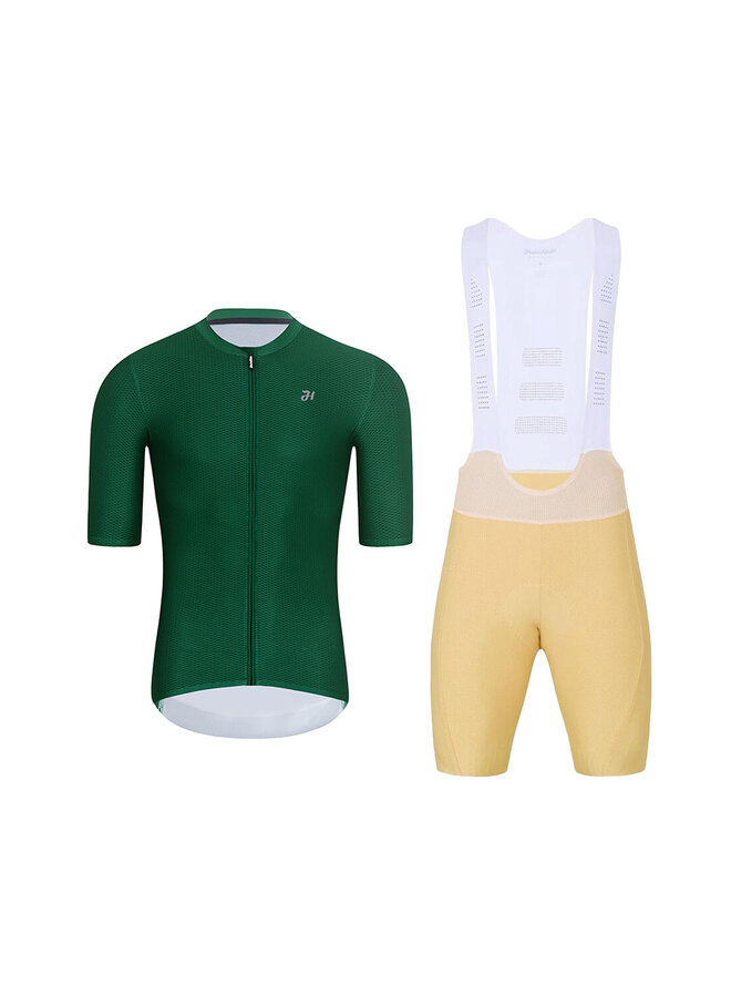 Cyklistický krátky dres a krátke nohavice - AEROLITE - béžová/zelená