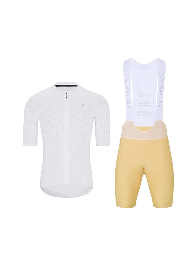 Cyklistický krátky dres a krátke nohavice - AEROLITE - béžová/biela
