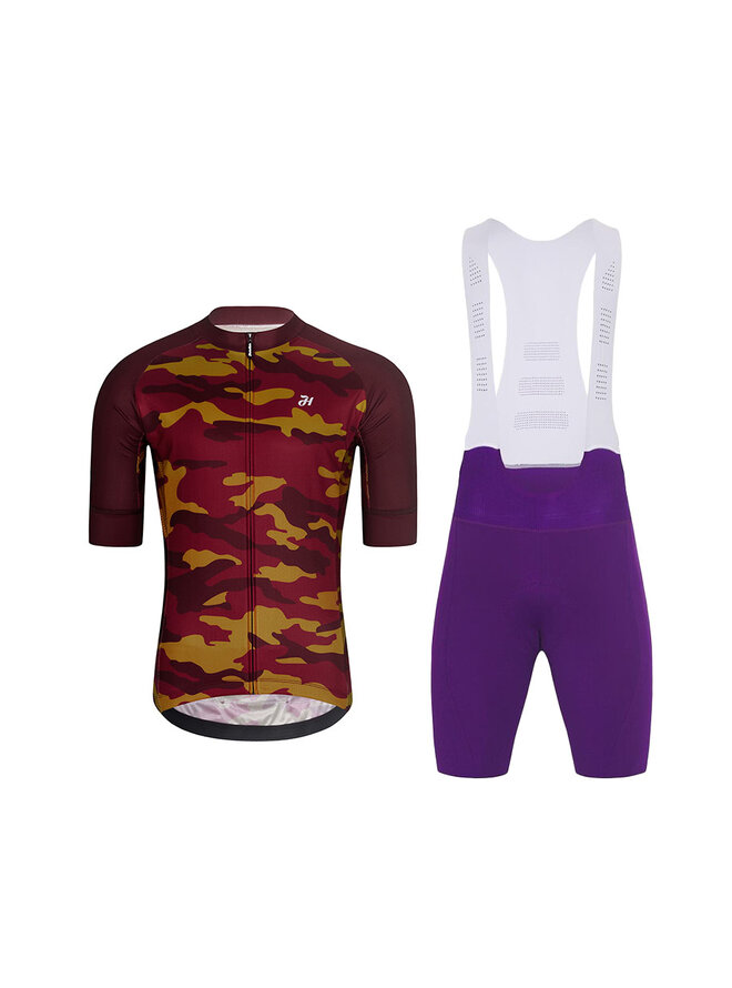 Cyklistický krátky dres a krátke nohavice - CAMOTRAIL - fialová/bordová