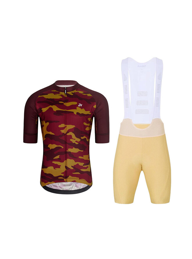 Cyklistický krátky dres a krátke nohavice - CAMOTRAIL - béžová/bordová