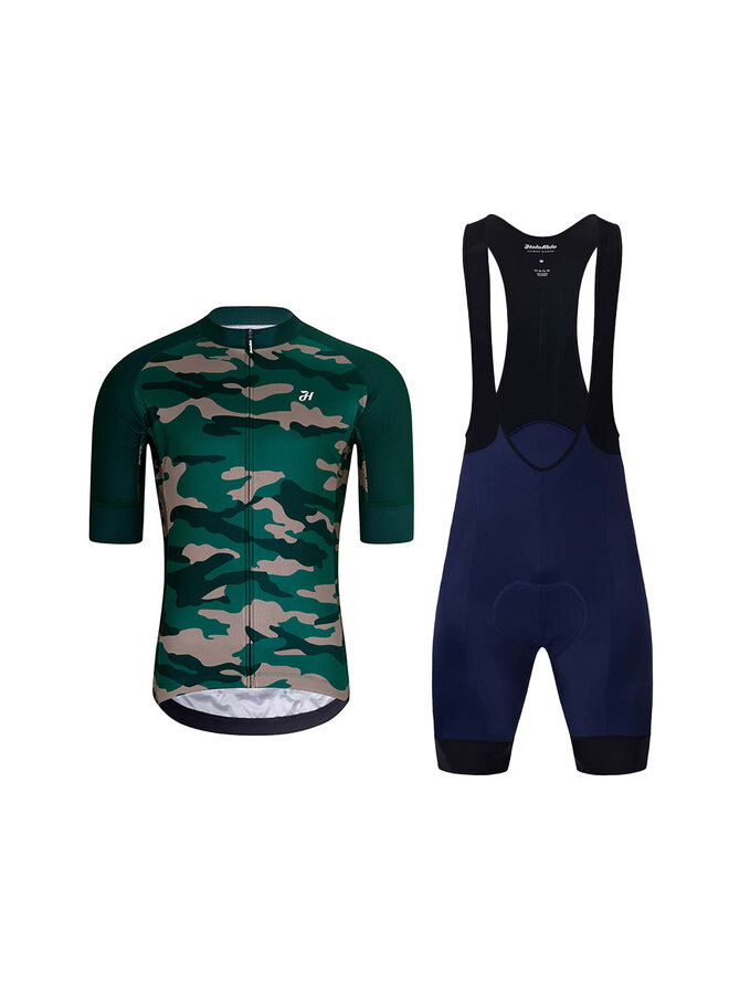 Cyklistický krátky dres a krátke nohavice - CAMOTRAIL - modrá/čierna/zelená
