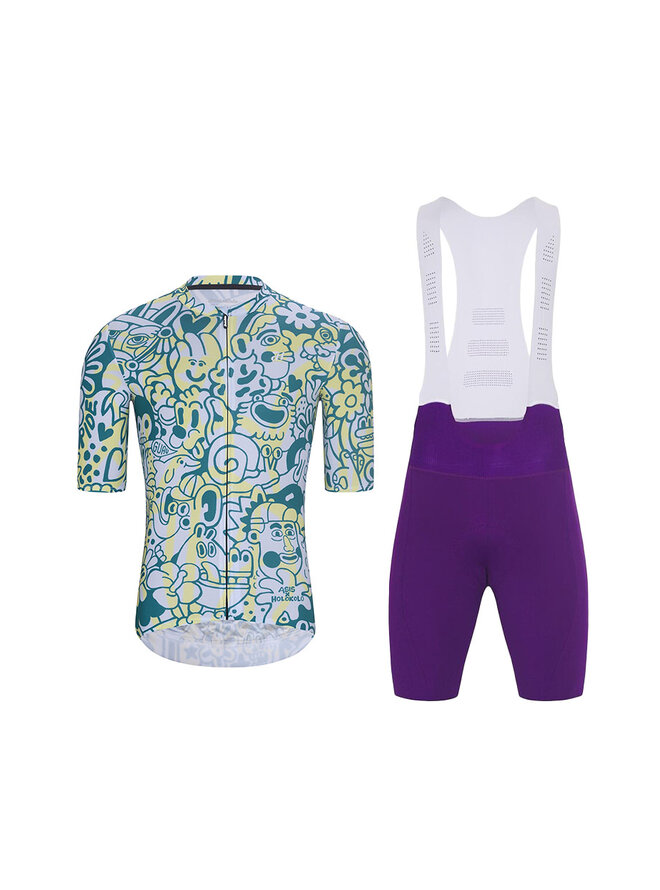 Cyklistický krátky dres a krátke nohavice - COMIC - fialová/svetlo modrá