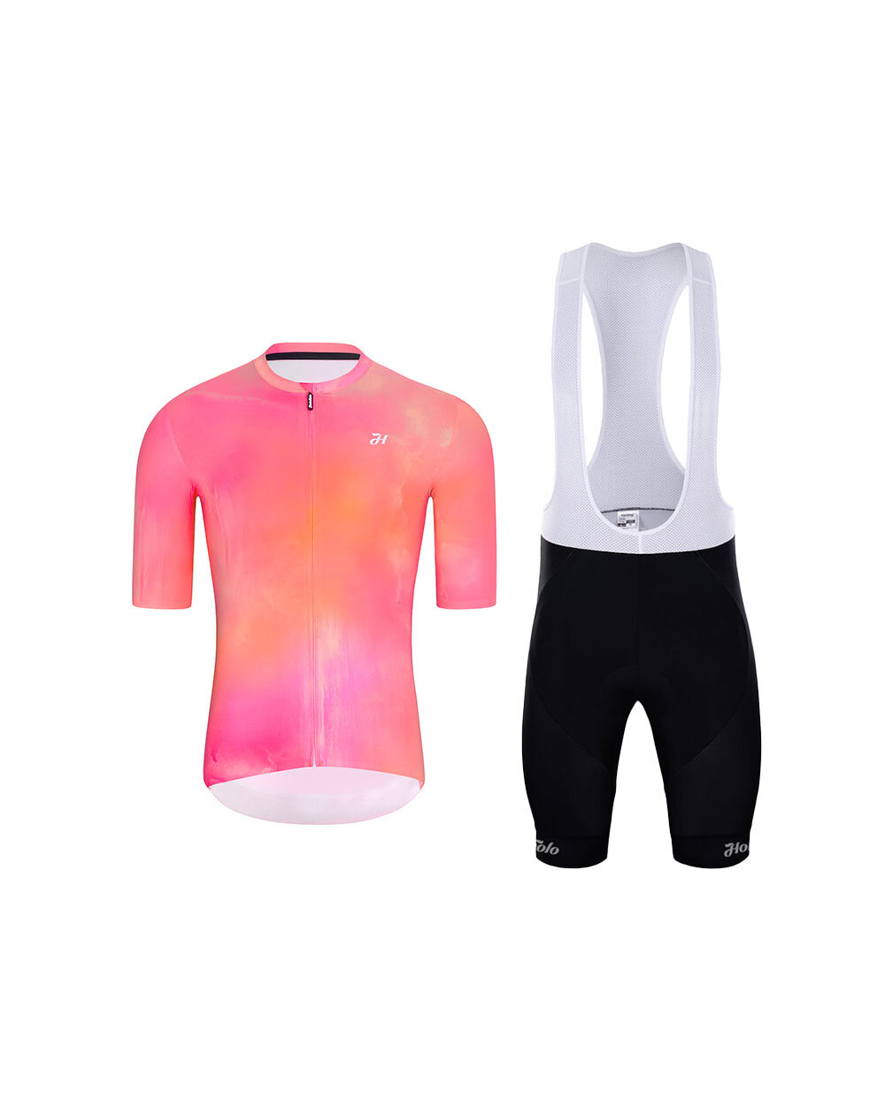 Cyklistický krátky dres a krátke nohavice - COSMA - čierna/oranžová/ružová