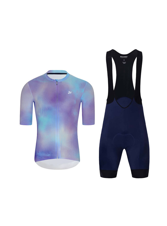 Cyklistický krátky dres a krátke nohavice - COSMA - modrá/čierna/svetlo modrá/fialová