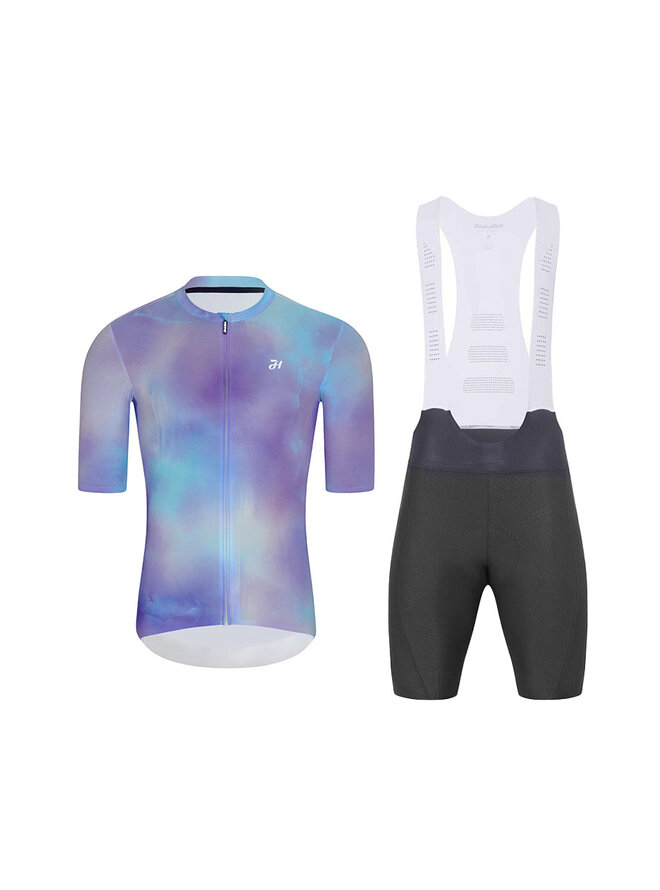 Cyklistický krátky dres a krátke nohavice - COSMA - antracitová/svetlo modrá/fialová